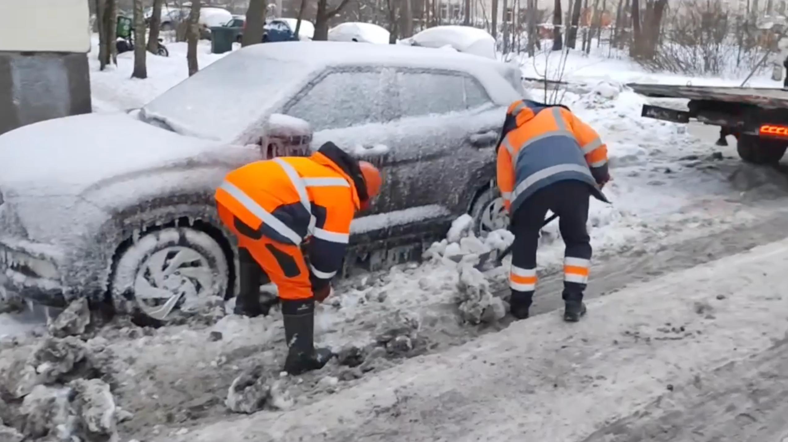 В Петербурге с улицы Коллонтай эвакуировали попавшую в «ледяной плен» машину