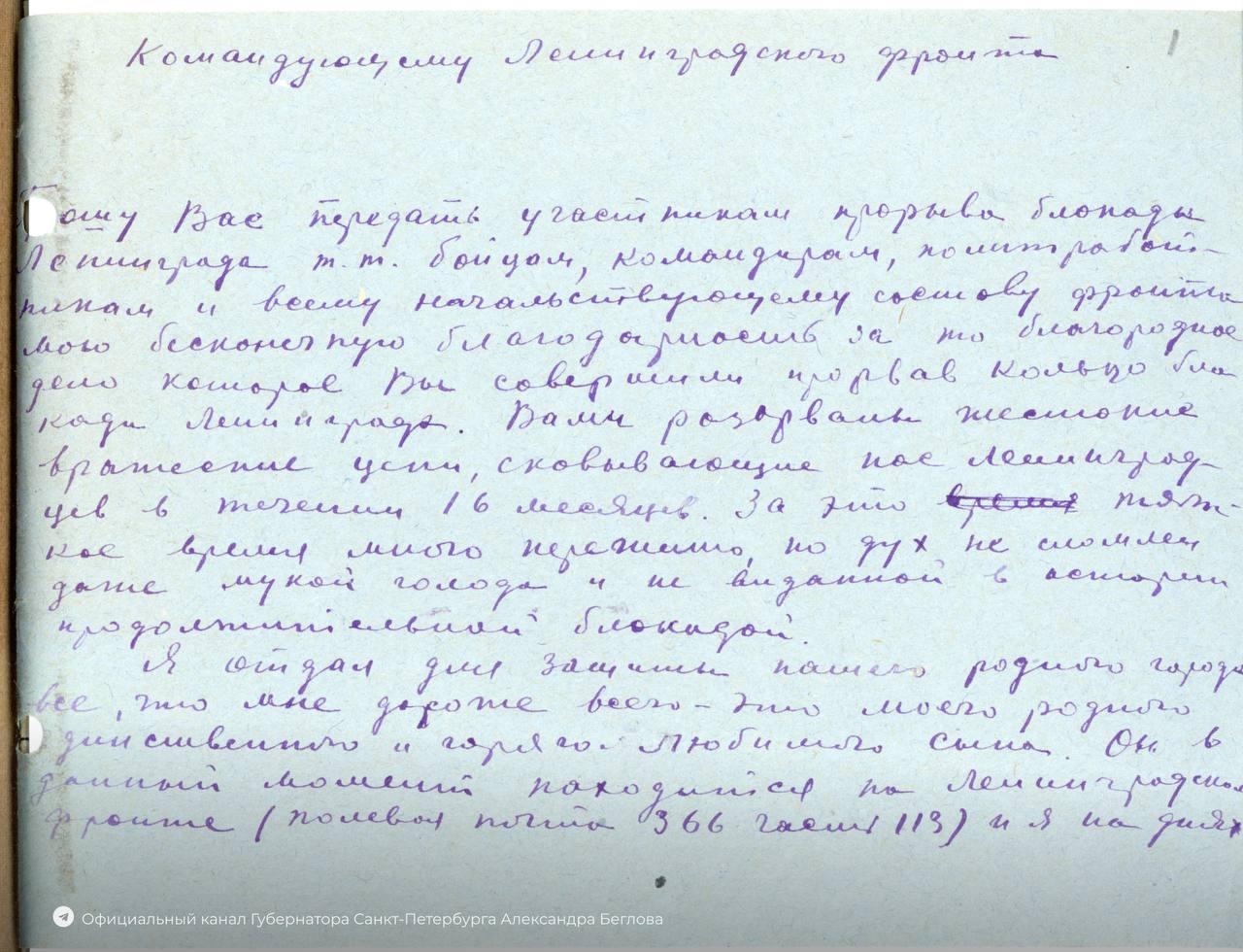 Александр Беглов поделился письмами ленинградцев, отправленными на фронт сразу после прорыва блокады