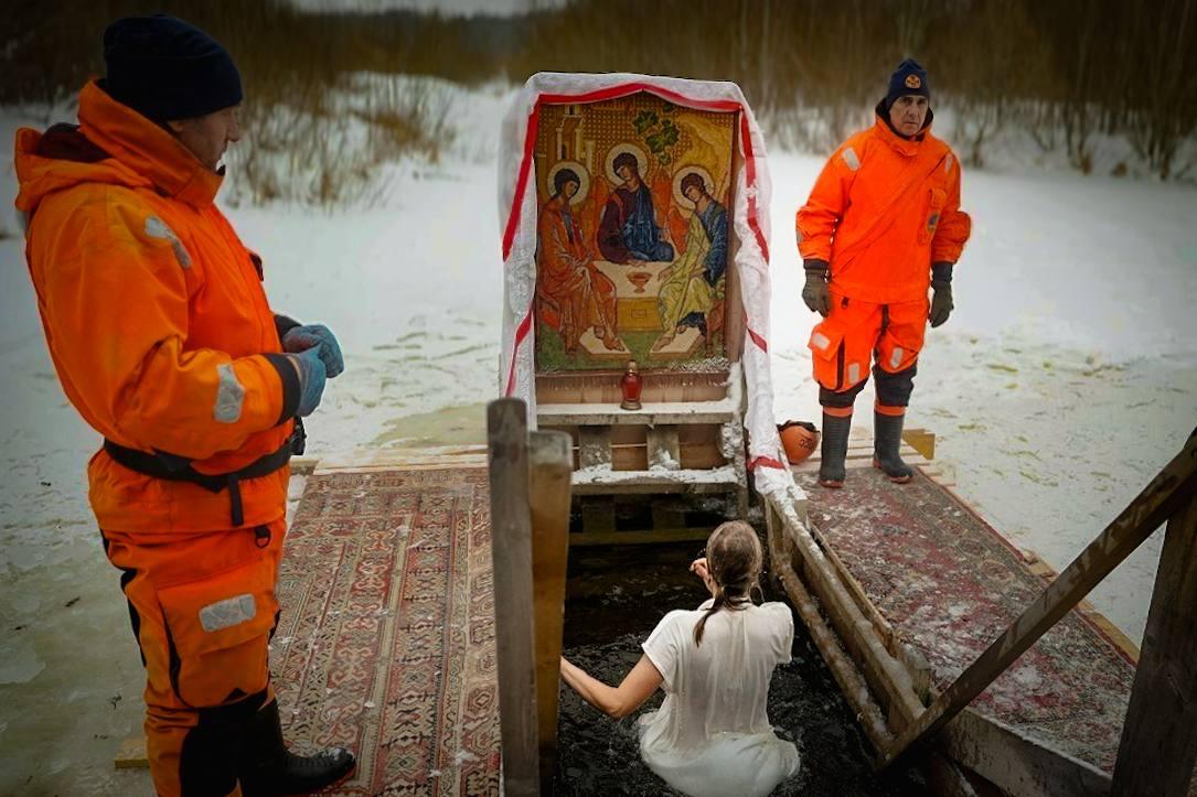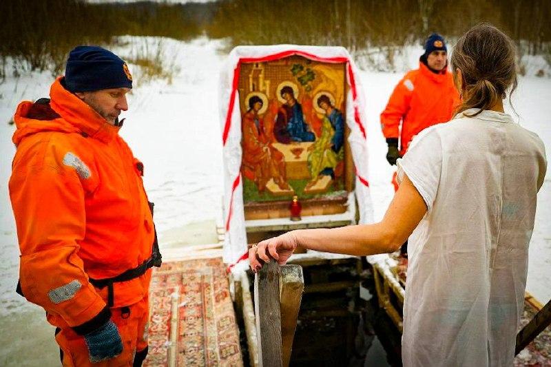 Купание в проруби на Крещение Господне (Богоявление) – народная традиция, которая распространена в России. Специальную купель, подготовленную для праздника,еще называют иорданью (в память о реке Иордан, в которой крестился Иисус Христос). Обычно её вырубают в форме креста или прямоугольной купели.