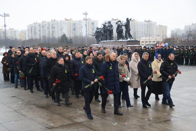 В памятном мероприятии приняли участие депутаты, представители Законодательного собрания Санкт-Петербурга и Ленинградской области, ветераны, кадеты образовательных учреждений и патриотических объединений Московского района, а также представители традиционных конфессий. К монументу также прибыли губернатор Санкт-Петербурга Александр Беглов, председатель Законодательного собрания Александр Бельский, руководители ветеранских организаций, почетные граждане города, герои Российской Федерации.