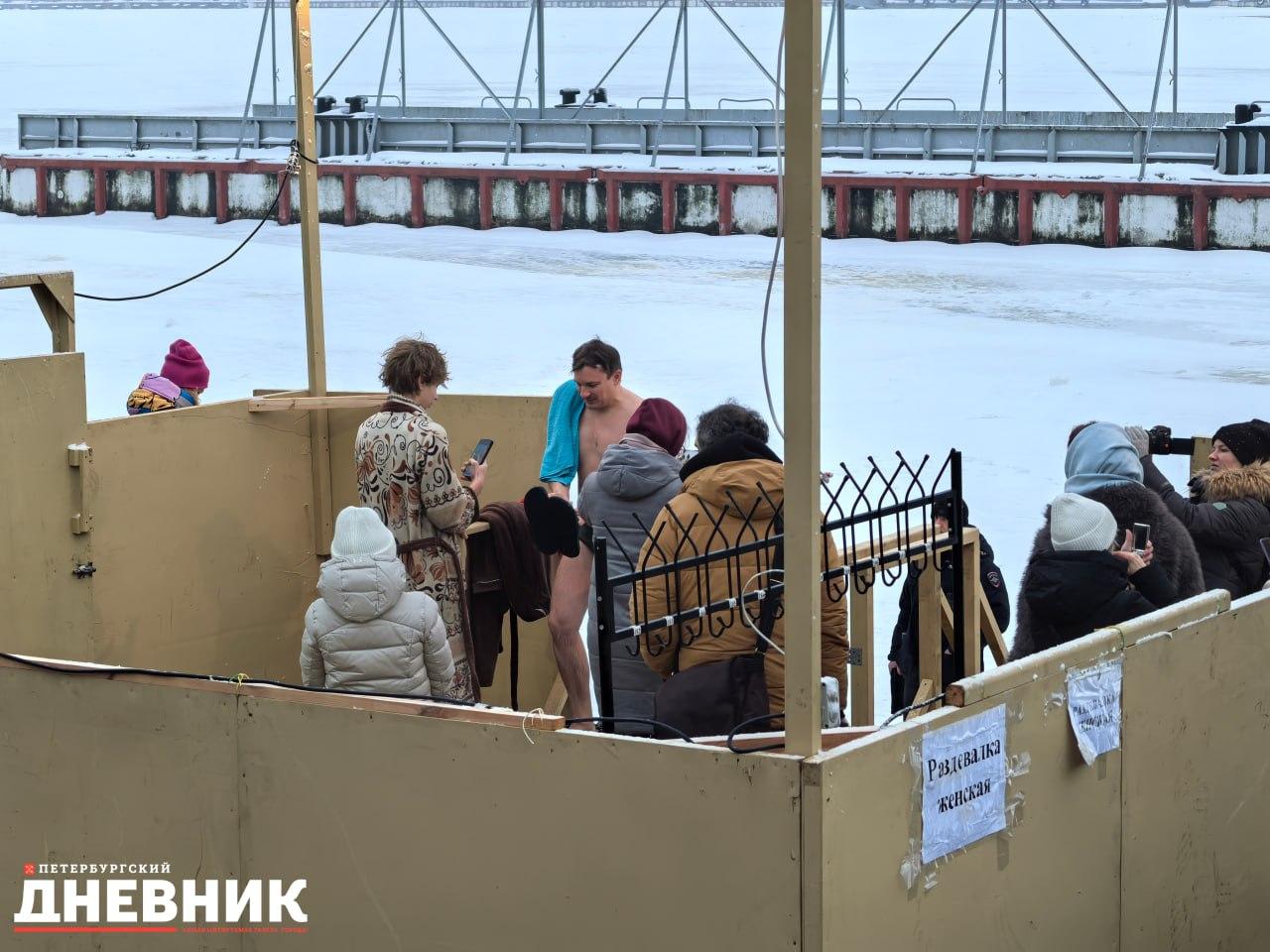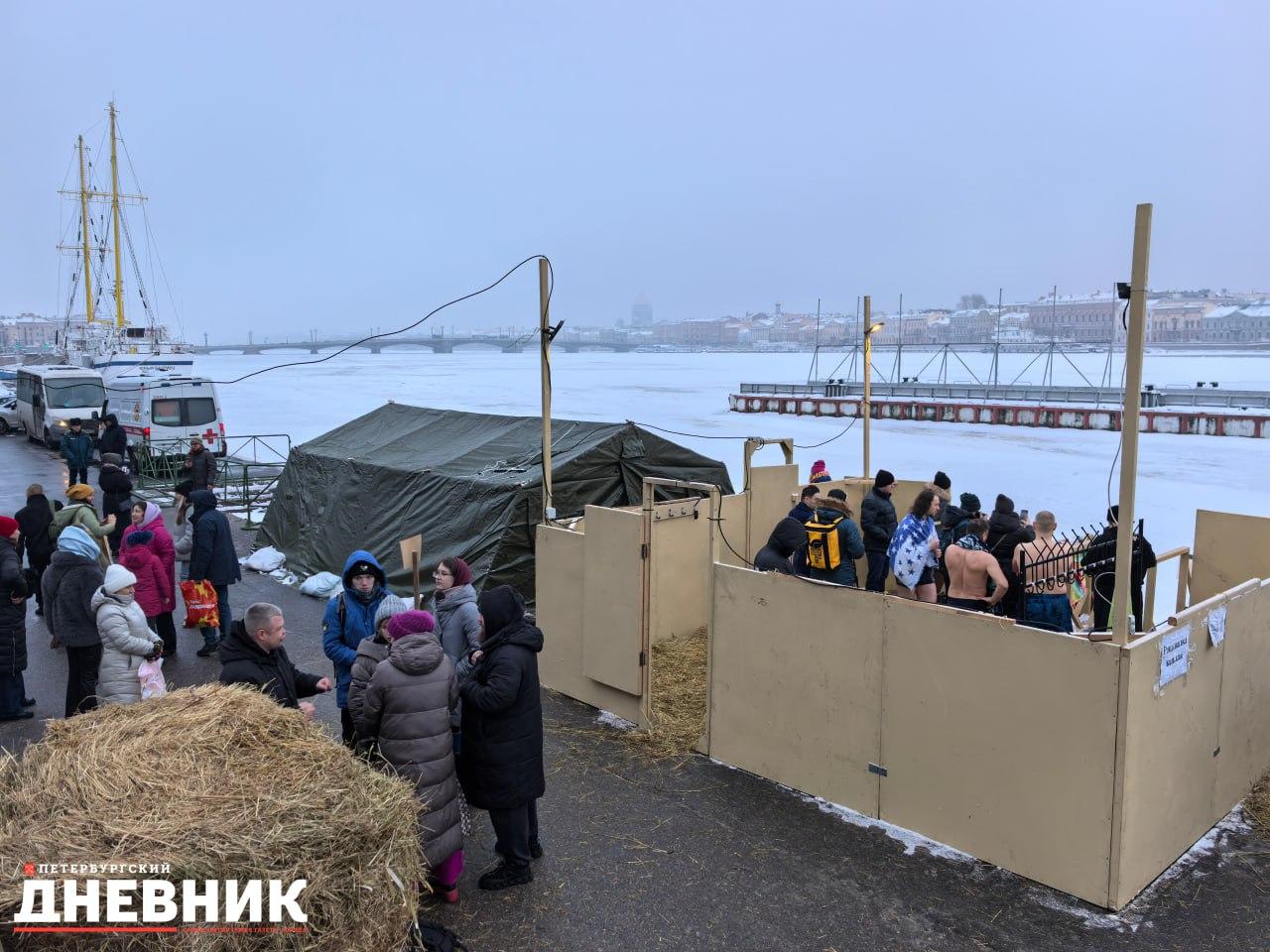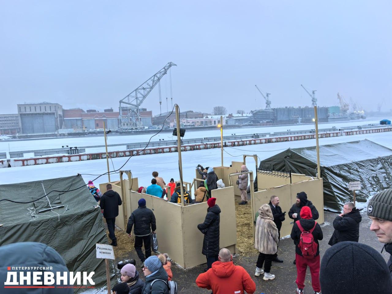 На Васильевском острове в Петербурге верующие и просто любители экстрима сегодня окунались в освящённые проруби.