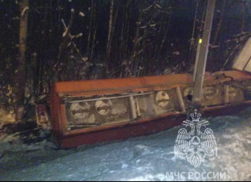 По предварительным данным, водитель автомобиля, перевозящего 30 кубометров бензина, не справился с управлением, в результате автомобиль съехал в кювет и опрокинулся на бок.
