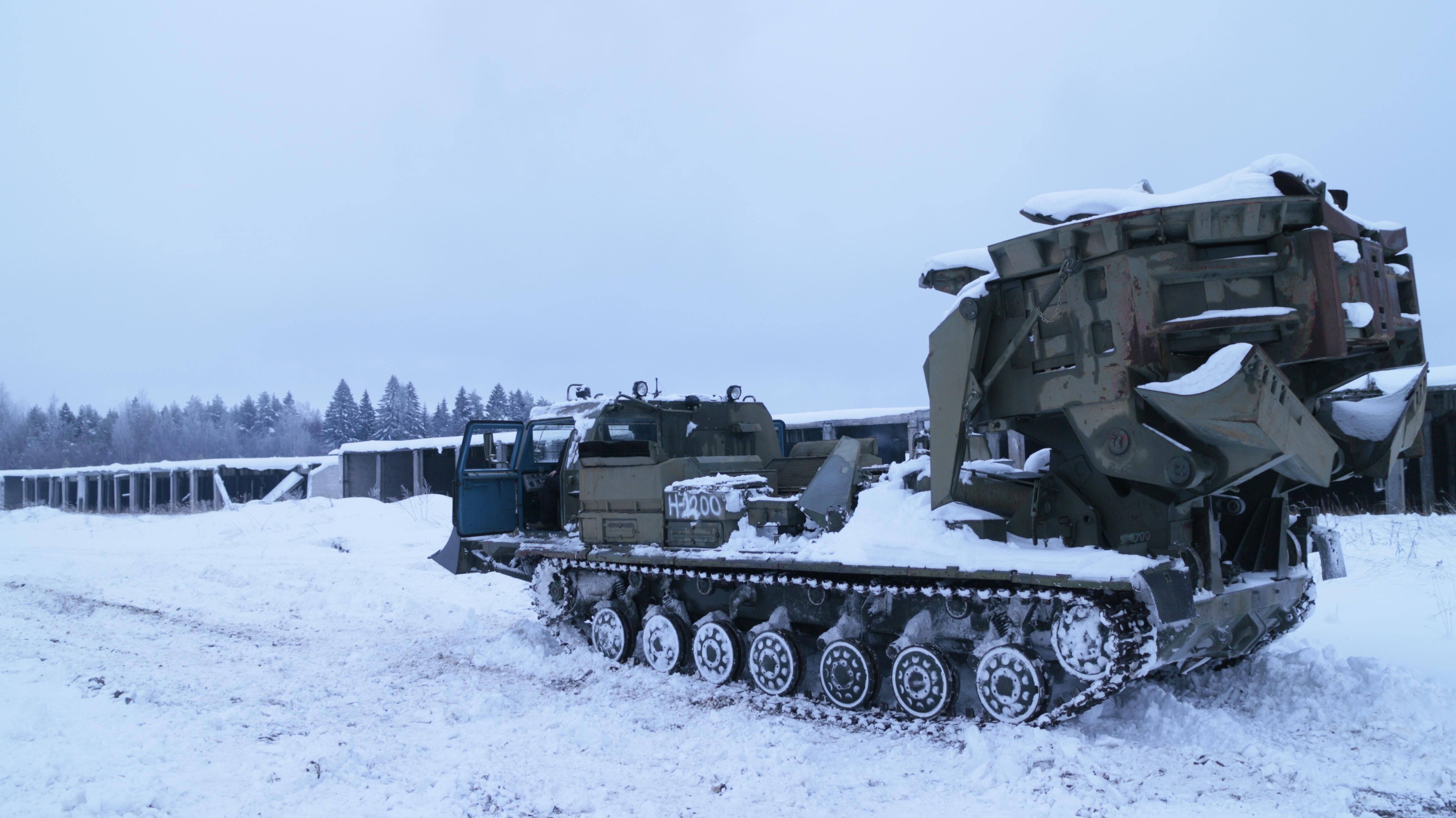 Рев мощных двигателей разрывает тишину морозного утра – еще на одной учебной точке военнослужащие отрабатывают вождение инженерной техники. Военные машины поражают своими размерами и возможностями. Одна из них – многоцелевой тягач МДК-3 – только на вид кажется громоздкой и неповоротливой. Но когда он трогается с места, то быстро набирает скорость – и уже больше похож не на траншейный экскаватор, а на гоночный автомобиль. Впрочем, ценится эта техника не только из-за скорости. Рытье котлованов под укрытие для вооружения и личного состава – вот ее основное предназначение.
