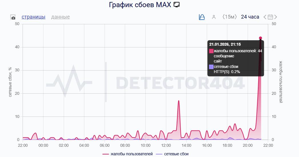 Вечером среды у жителей Санкт-Петербурга и Москвы возникли неполадки в работе национального мессенджера Max, сообщает телеграм-канал сервиса «Сбой.рф».