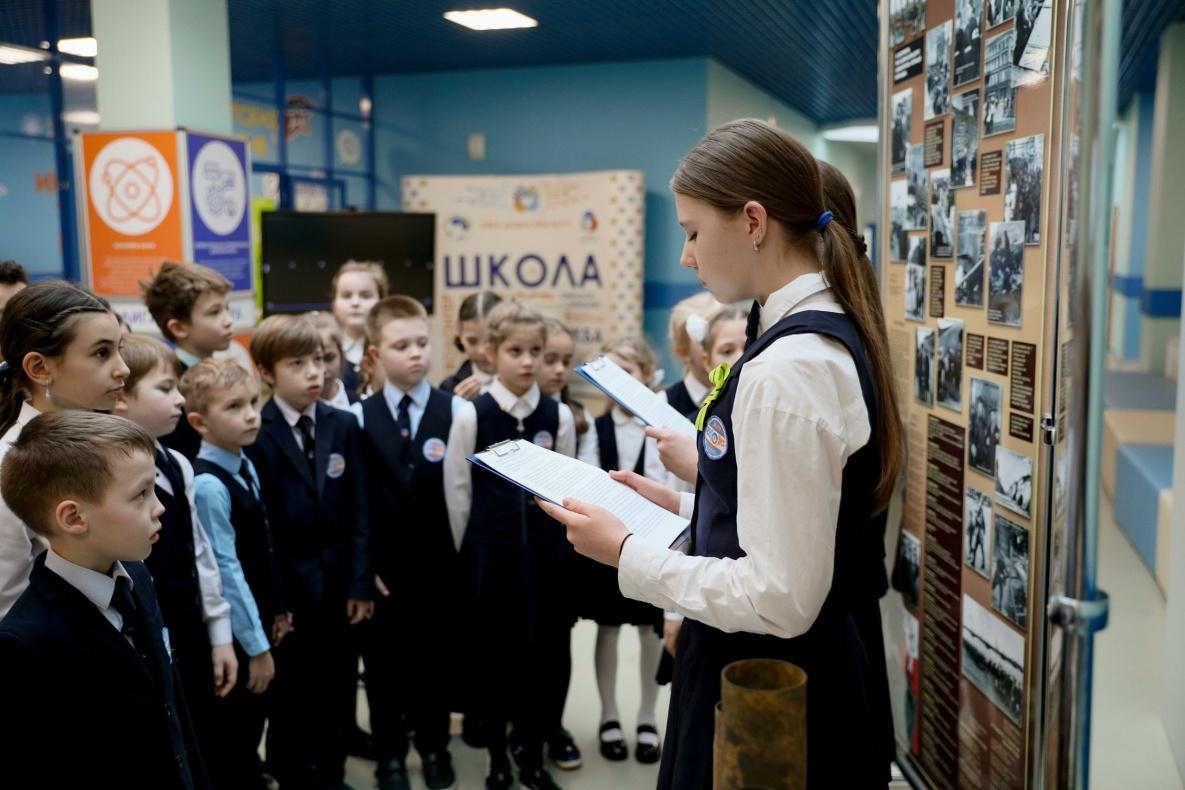 Более ста школьников стали участниками тематической выставки, но главными её проводниками выступили не взрослые, а сами ученики. Активисты волонтёрского центра и совета обучающихся взяли на себя роль экскурсоводов, чтобы рассказать ученикам начальных классов об основных этапах блокады, Дороге жизни и судьбах ленинградцев на примере дневника Тани Савичевой.