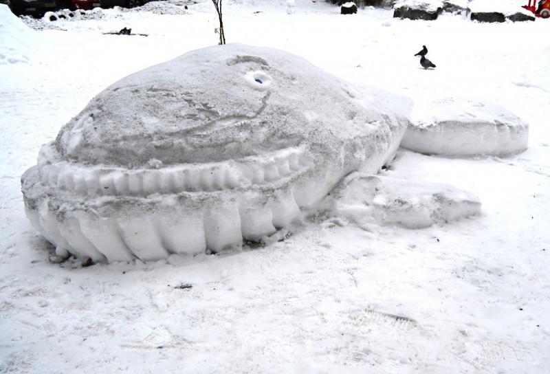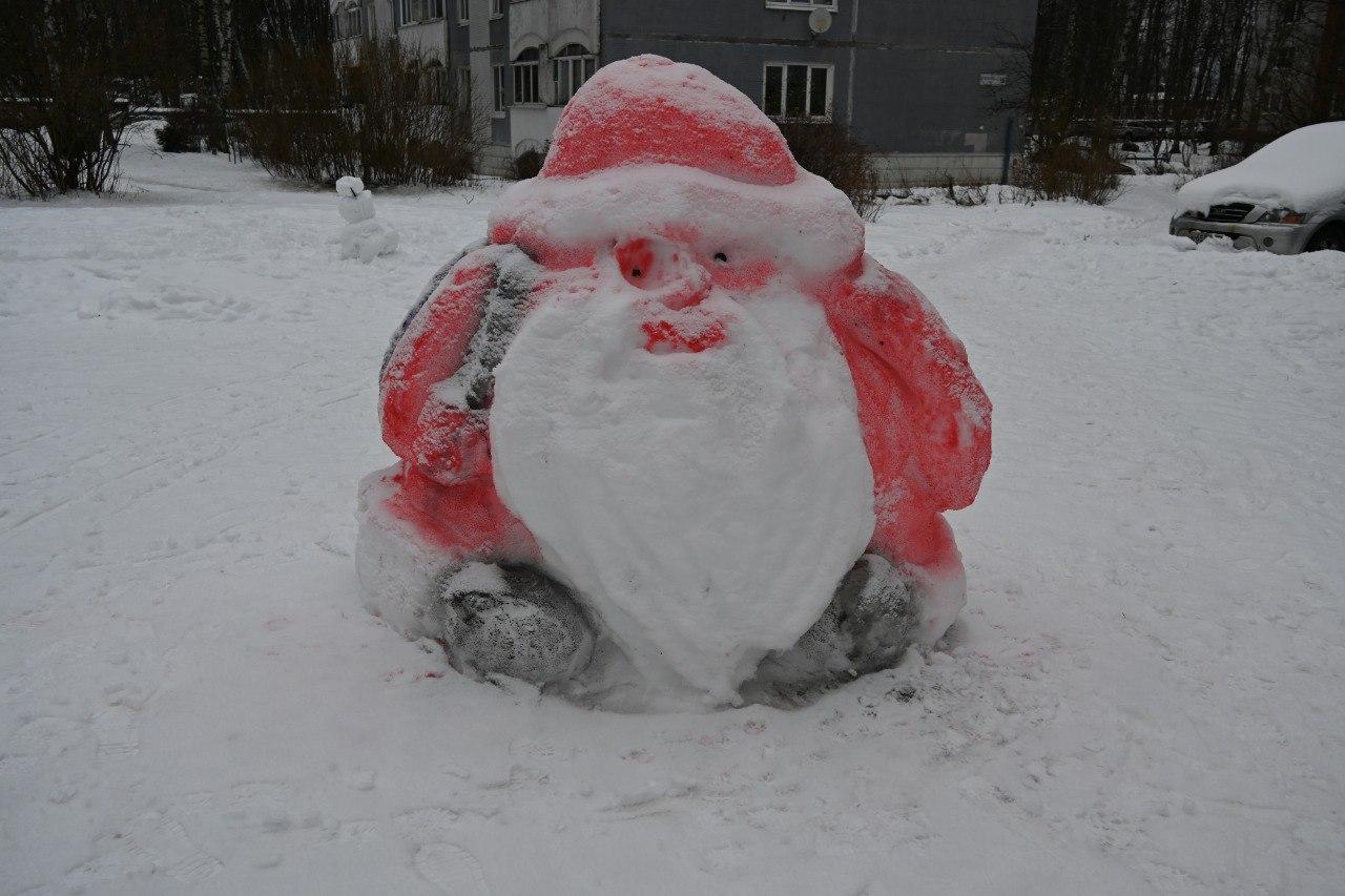 Вокруг здания библиотеки имени Алвара Аалто «выросла» целая белоснежная армия. Уже стала доброй традицией выставка настоящих снежных шедевров: не первый год один из жителей Выборга создает в своем дворе на улице Приморской, 60, фигуры из снега, раскрашивать которые охотно помогают горожане разного возраста.
