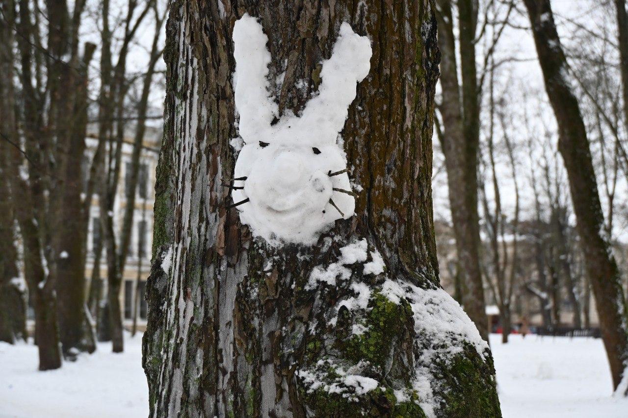 Когда снег хорошо лепится, в каждом уголке Выборга можно увидеть сказочных персонажей. В парке Ленина, например, снеговики не только стоят на земле, но и прячутся на деревьях.