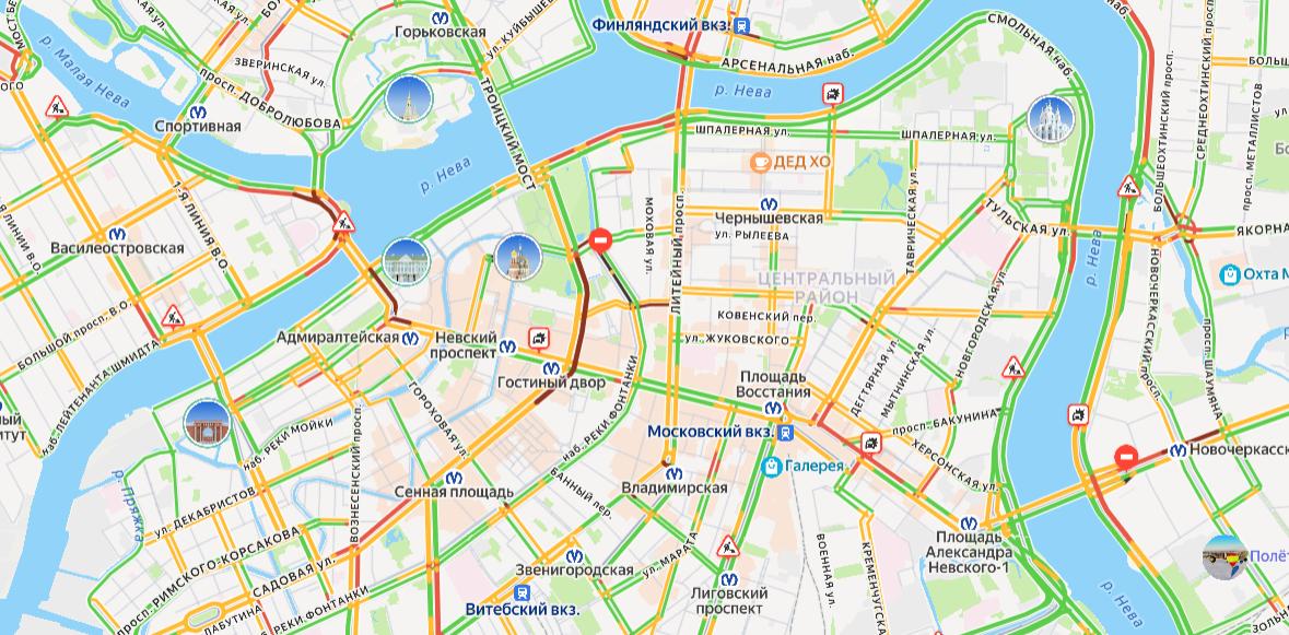 Отметим, что в целом дорожная ситуация в Петербурге на данный момент обходится без серьезных заторов. Сервис «Яндекс. Пробки» оценивает положение дел в 4 «желтых» балла.