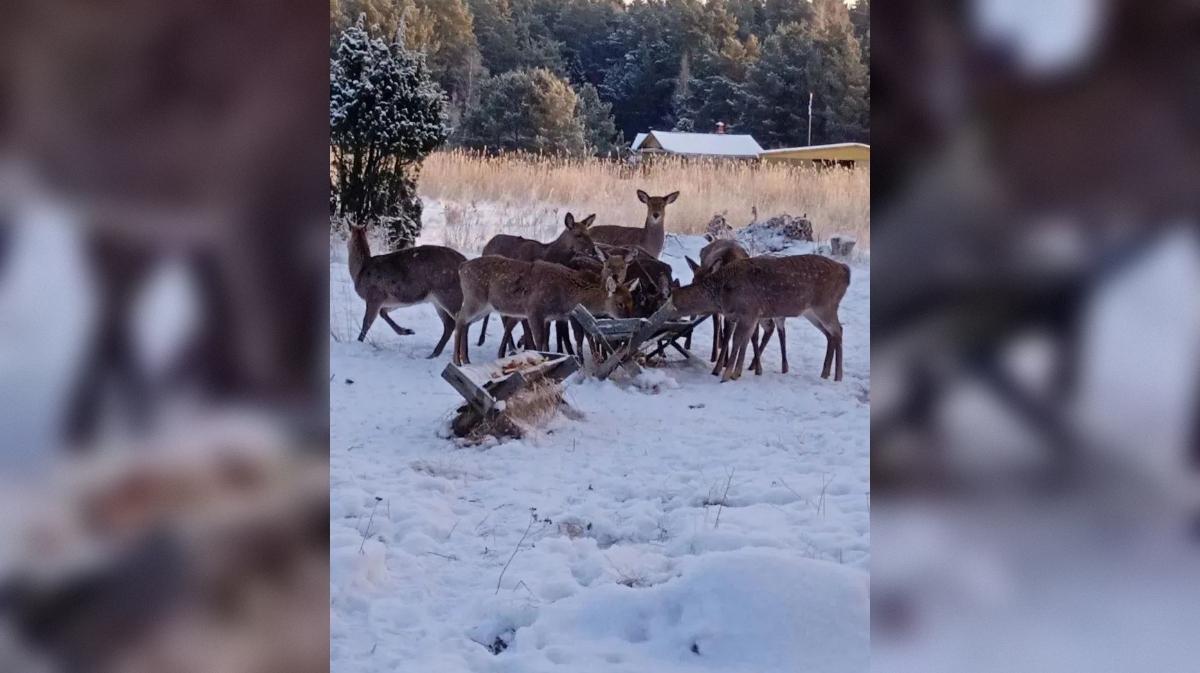 В Кургальском заказнике в Ленобласти началась зимняя подкормка диких оленей
