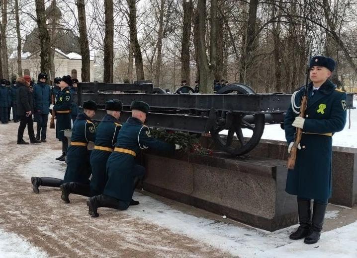 На Аллее Памяти собрались жители блокадного города, представители общественных организаций, молодежь и глава администрации Московского района. Участники возложили цветы к памятному знаку «Вагонетка».