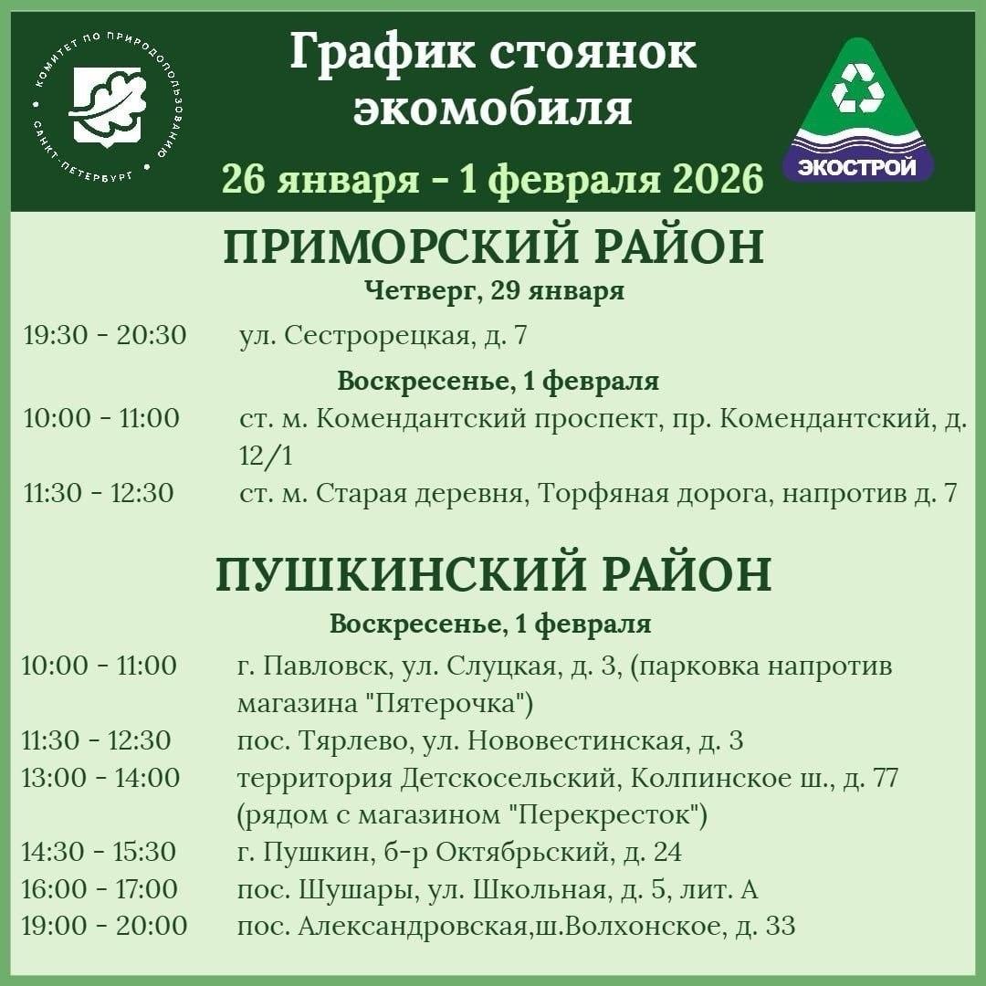 В Пушкинский район Петербурга едет экомобиль. Об этом жителям района рассказали в Telegram-канале администрации.