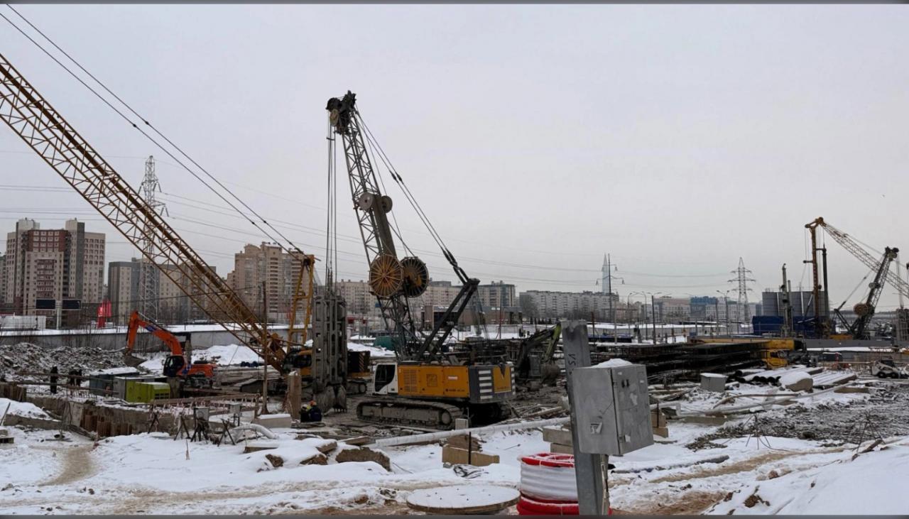 На участке будущей станции метро «Каменка» на Комендантском проспекте идут подготовительные работы перед запуском тоннелепроходческого комплекса «Надежда». Строители возводят специальные стены в грунте, которые будут защищать котлован и пути от воды и давления почвы.