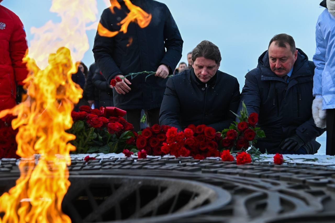 В день 82-й годовщины полного освобождения Ленинграда от блокады вице-губернатор Ленинградской области Евгений Барановский и сотрудники строительного блока возложили цветы к Вечному огню на Мемориале мирным гражданам – жертвам нацистского геноцида.