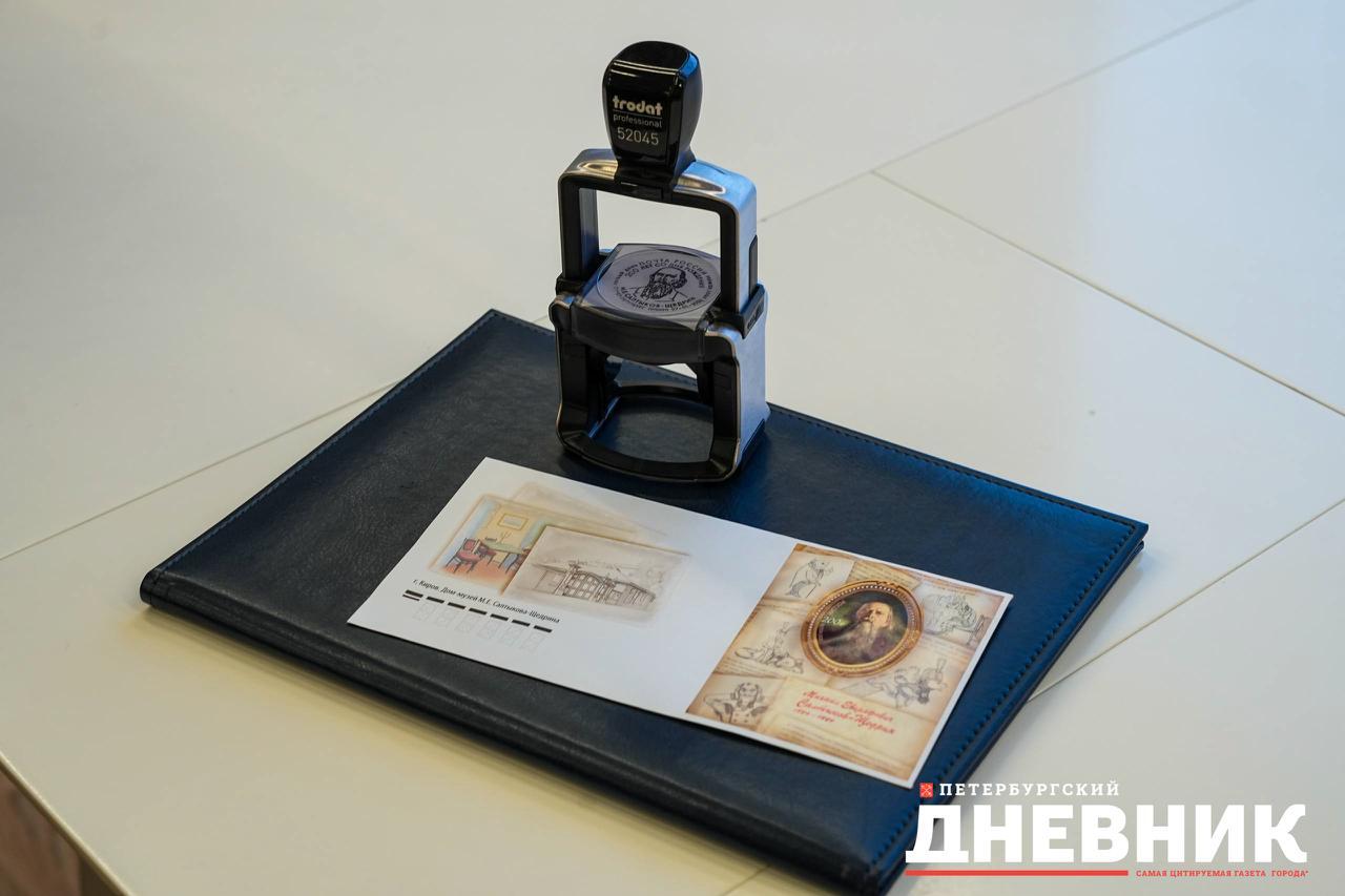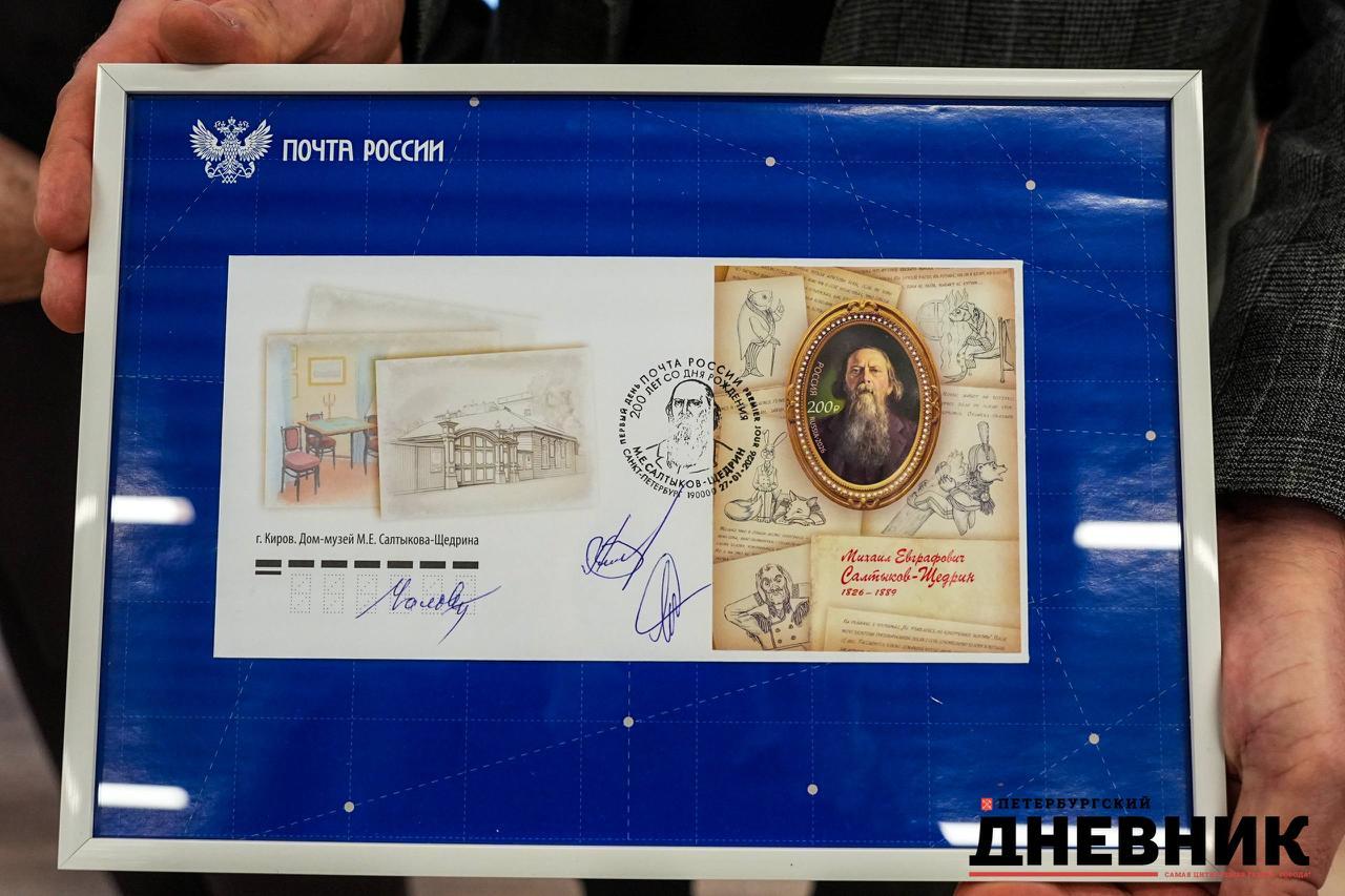 В завершение церемонии участники обменялись памятными конвертами с гашёной маркой, посвящённой Салтыкову-Щедрину.