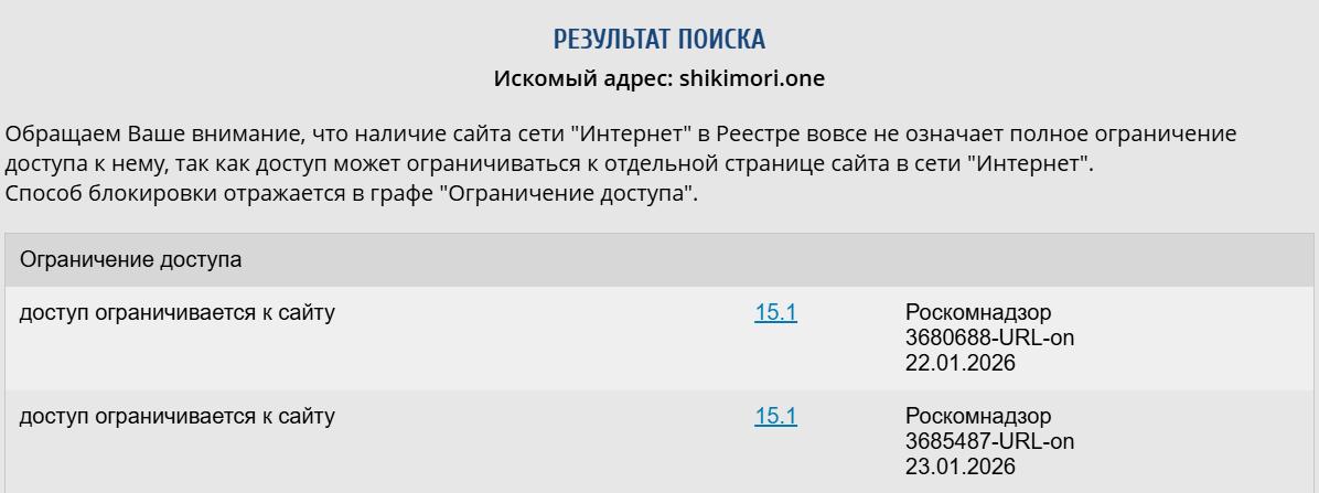 В России заблокировали популярный у фанатов аниме сайт «Шикимори»