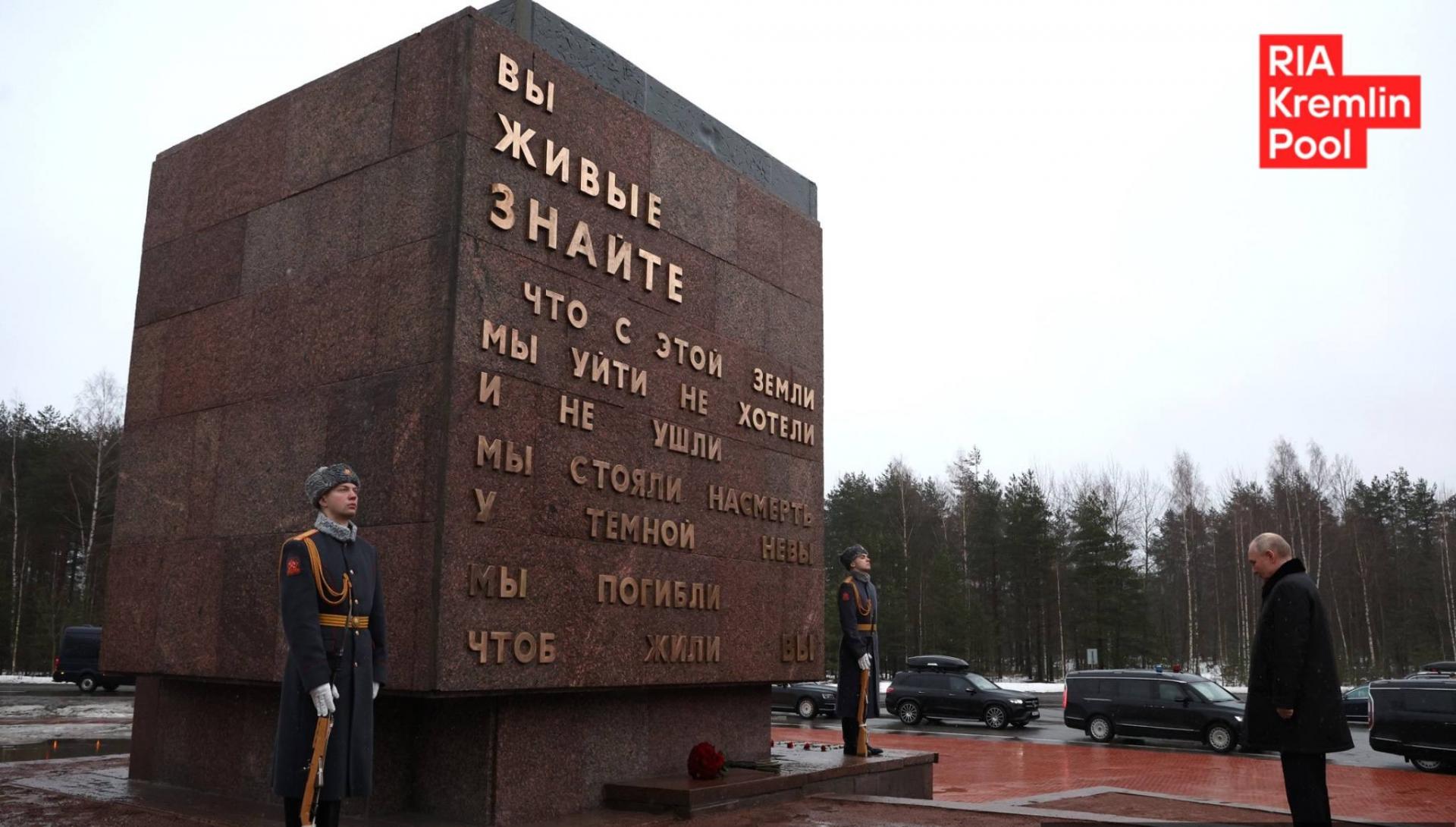 Президент России Владимир Путин принимает участие в памятных мероприятиях, посвященных 82-й годовщине полного освобождения Ленинграда от фашистской блокады. Первым пунктом программы главы государства стало посещение мемориала «Рубежный камень» на Невском пятачке в Ленинградской области.