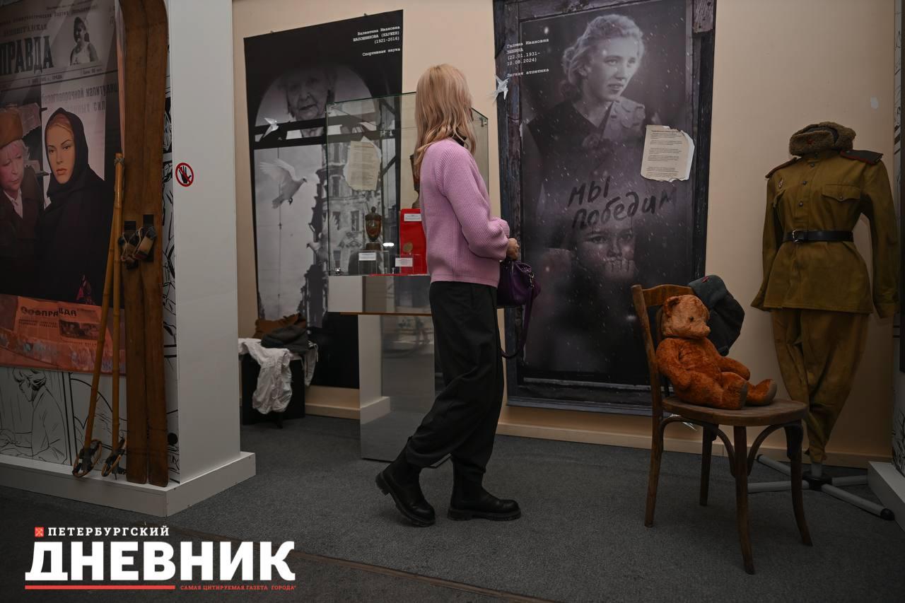 На выставке представлены блокадные артефакты – деревянные сани, примус, детская коляска, а также фотографии и личные вещи Александры Ивановой, Ольги Кошкиной, Любови Барановой, Нины Петровой, Валентины Грицук и многих других.