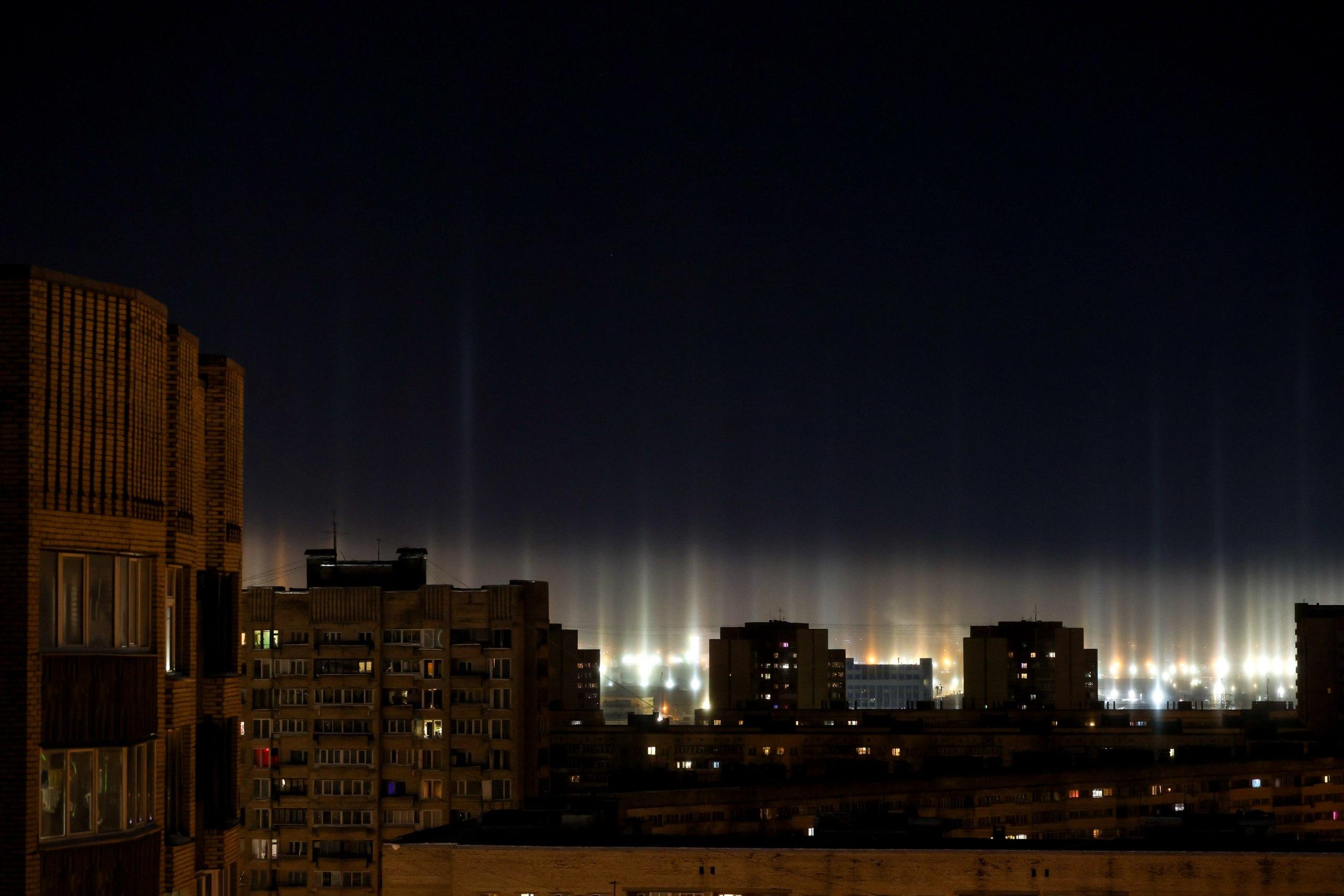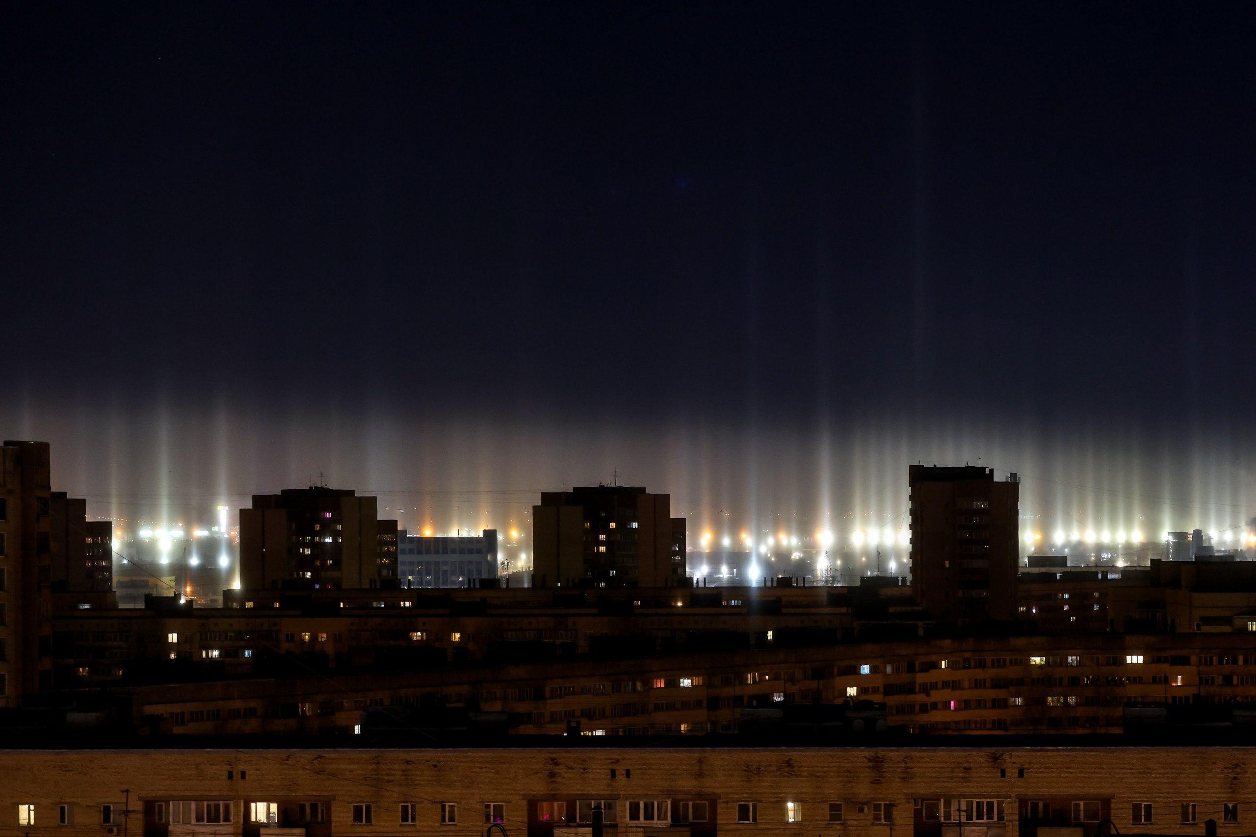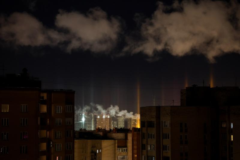Фото: в Петербурге ночью небо озарили гигантские световые столбы