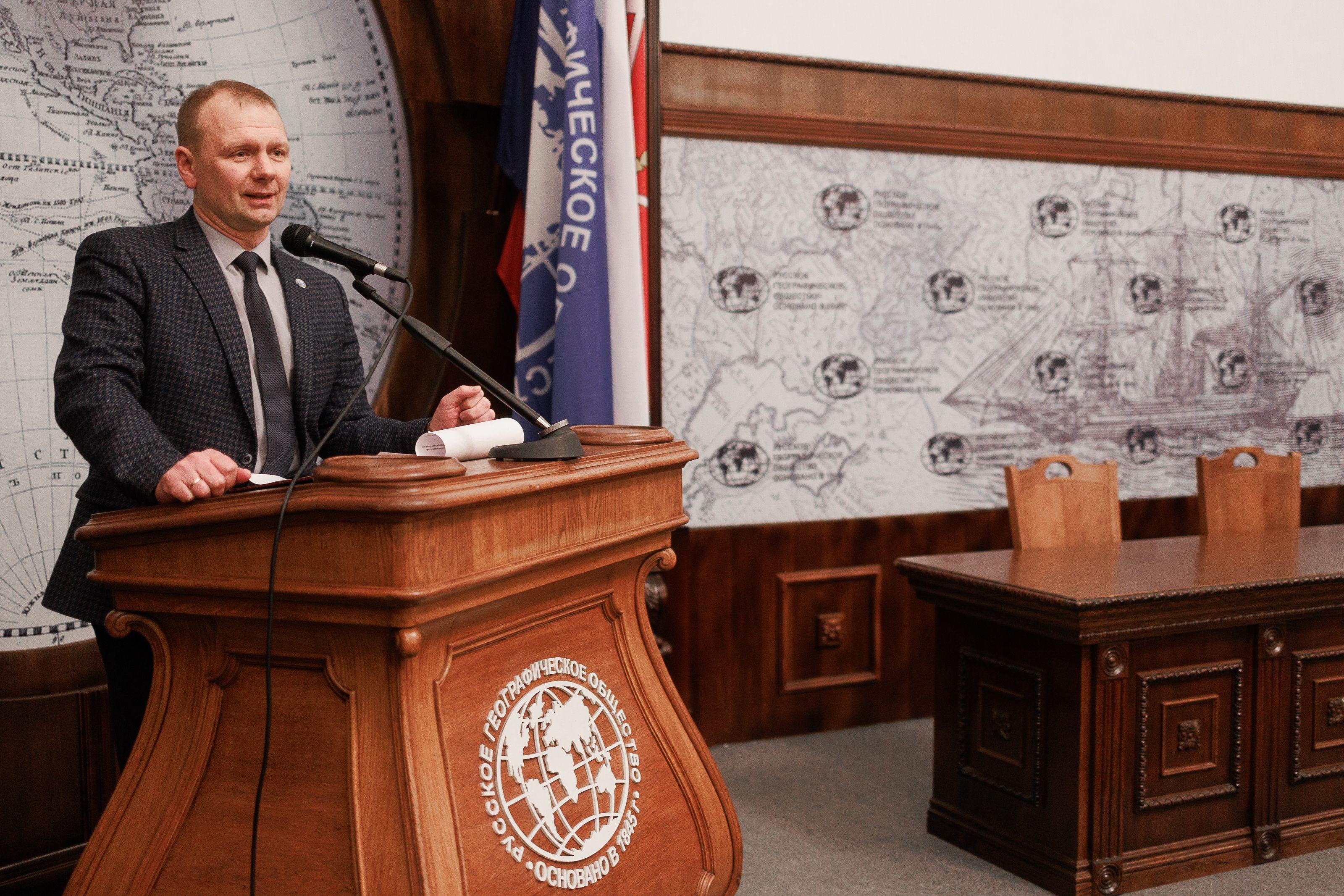 «Мне всегда приятно видеть в наших залах заинтересованных в науке, образованных людей. В прошлом году Русскому географическому обществу исполнилось 180 лет. Наша организация на протяжении всей своей истории занимается исследованиями, организует экспедиции, тем самым сохраняя и развивая наше историческое наследие. Одна из традиций Русского географического общества – благодарить людей, которые нам помогают. Я хотел бы отметить вклад в работу Русского географического общества вице-губернатора Евгения Разумишкина и поблагодарить его за помощь», – сказал Роман Рябинцев.