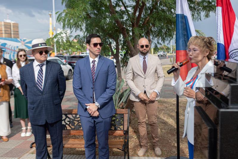 Посольство России в Парагвае опубликовало в своем телеграм-канале яркие моменты церемонии открытия памятника Юрию Гагарину в республике.