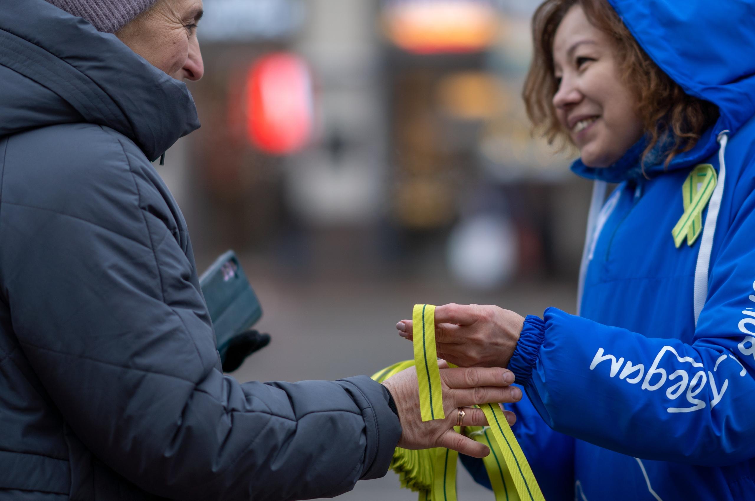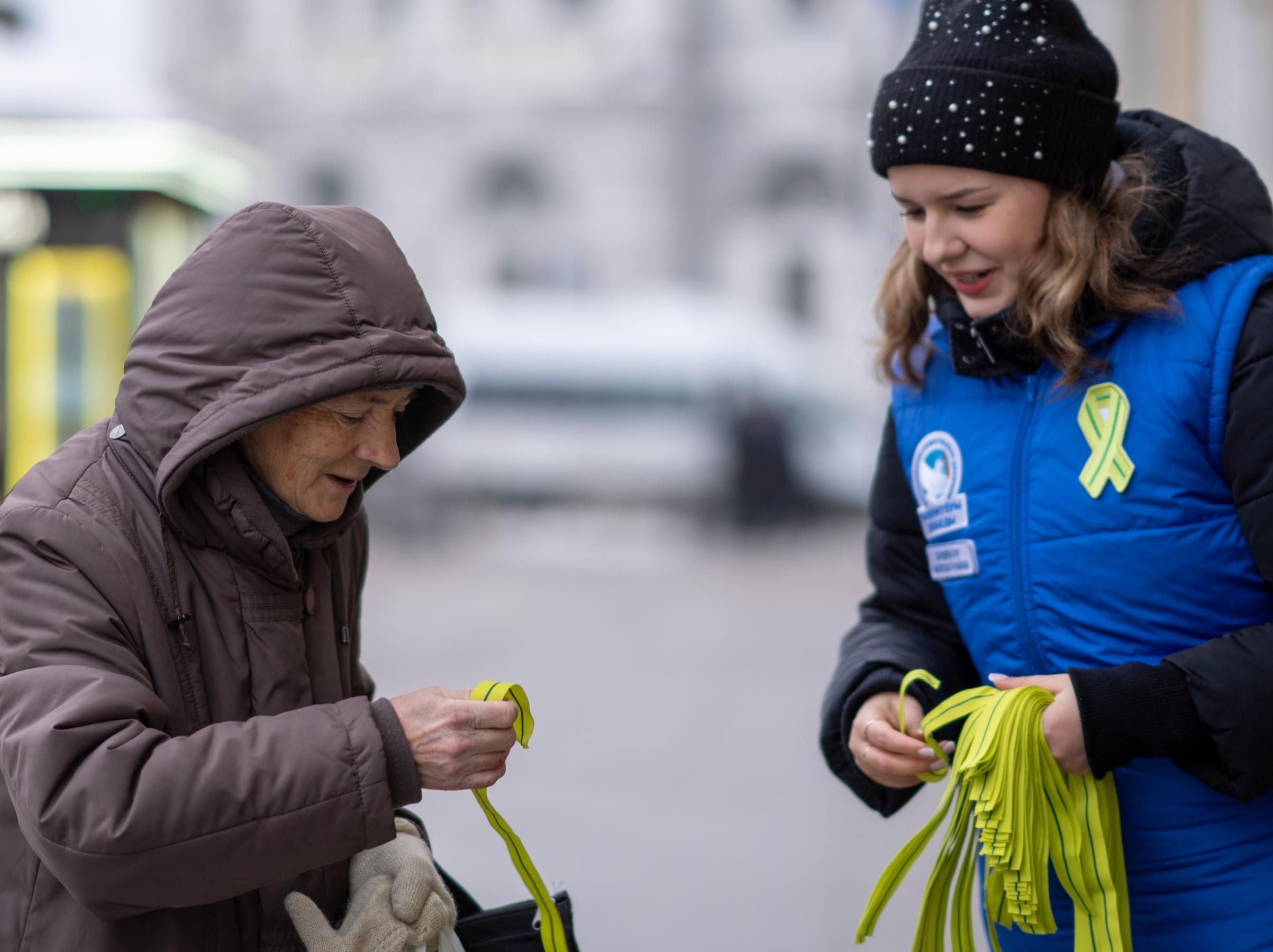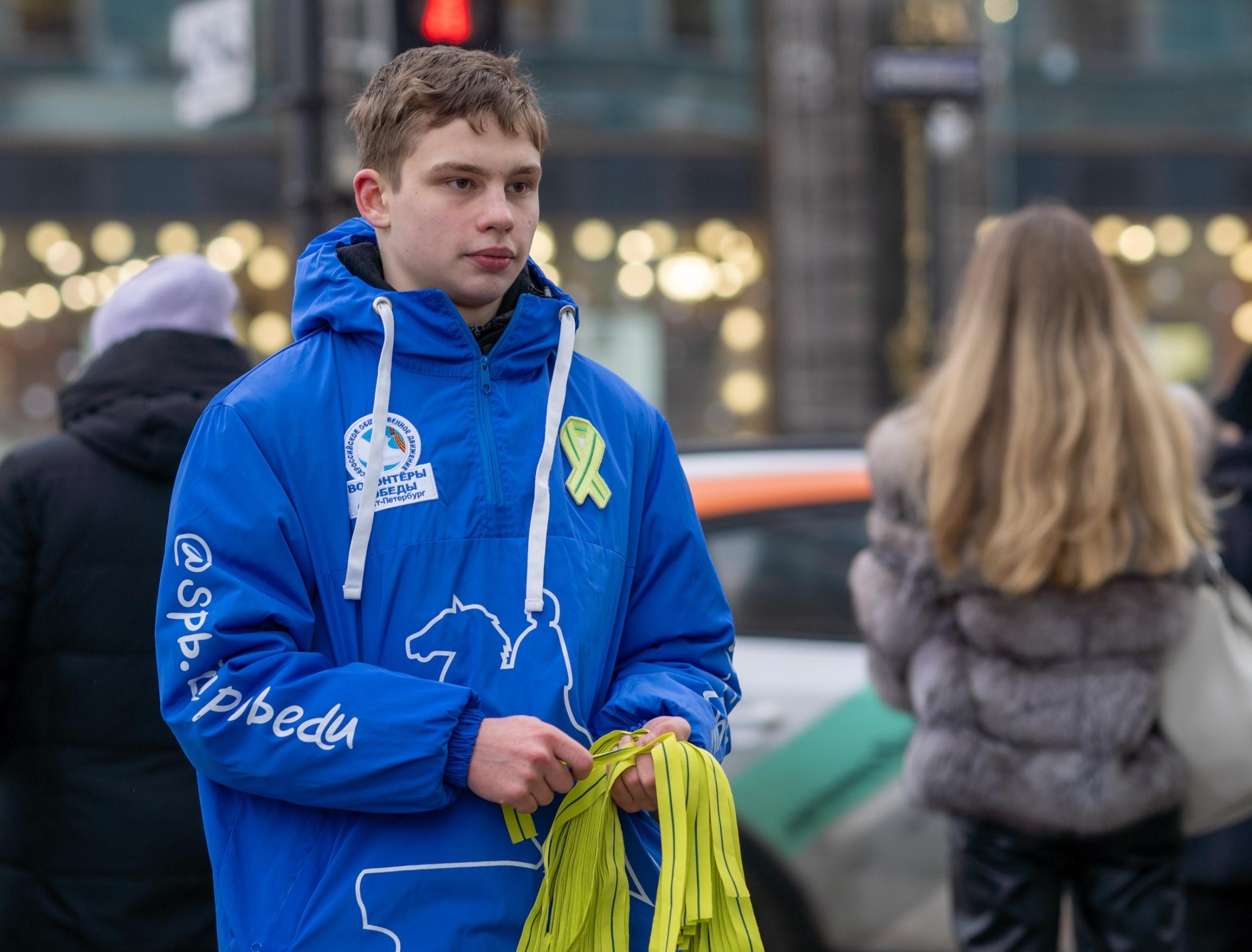 Одной из самых заметных акций стала раздача лент Ленинградской победы. Волонтёры вручили их у станций метро и на праздничных площадках. Лента повторяет цвета награды «За оборону Ленинграда»: оливковый – цвет Победы, зелёный – символ жизни.