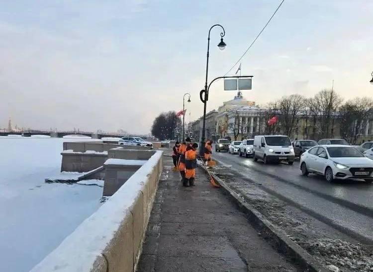 Особое внимание уделяется ключевым магистралям, таким как Октябрьская и Адмиралтейская набережные, а также Володарскому мосту, связывающему районы города. Убираются и пешеходные зоны, включая подземные переходы, например у Дунайского проспекта во Фрунзенском районе. Также убрались на Свердловской набережной и Ручьевском путепроводе.