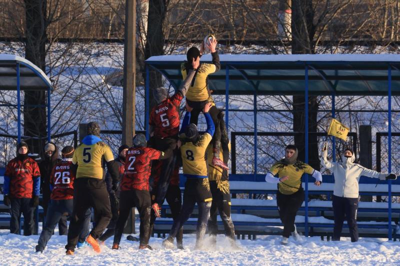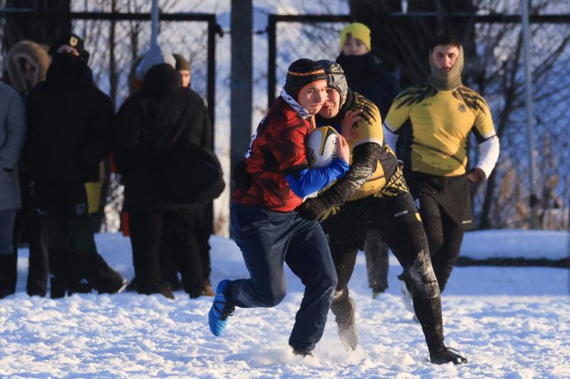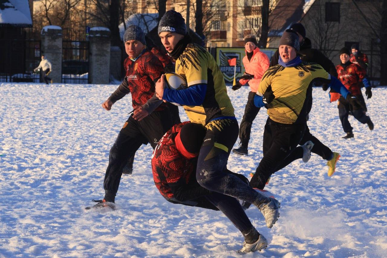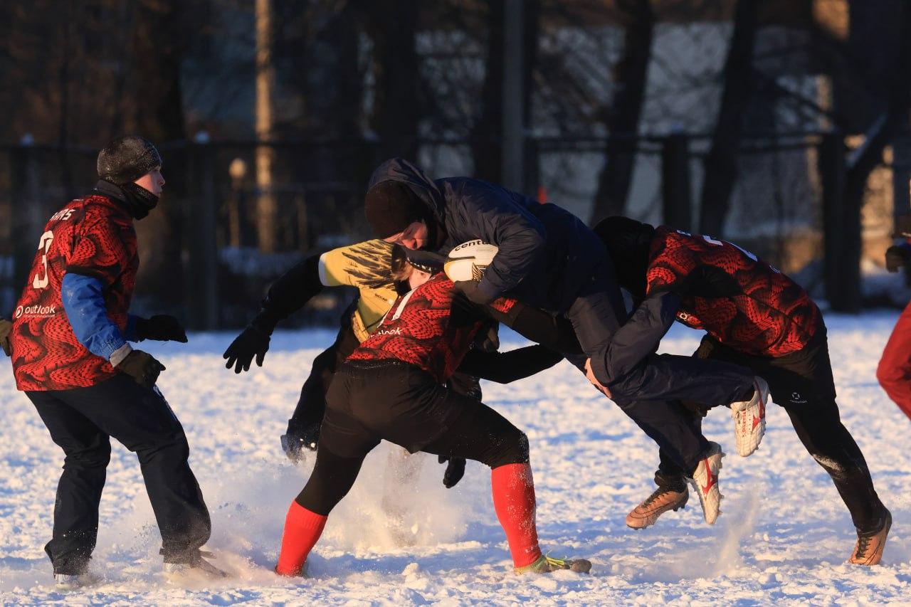 В Петербурге на заснеженном стадионе «Шторм» прошёл зимний Кубок «Нарвской заставы» по классическому регби.