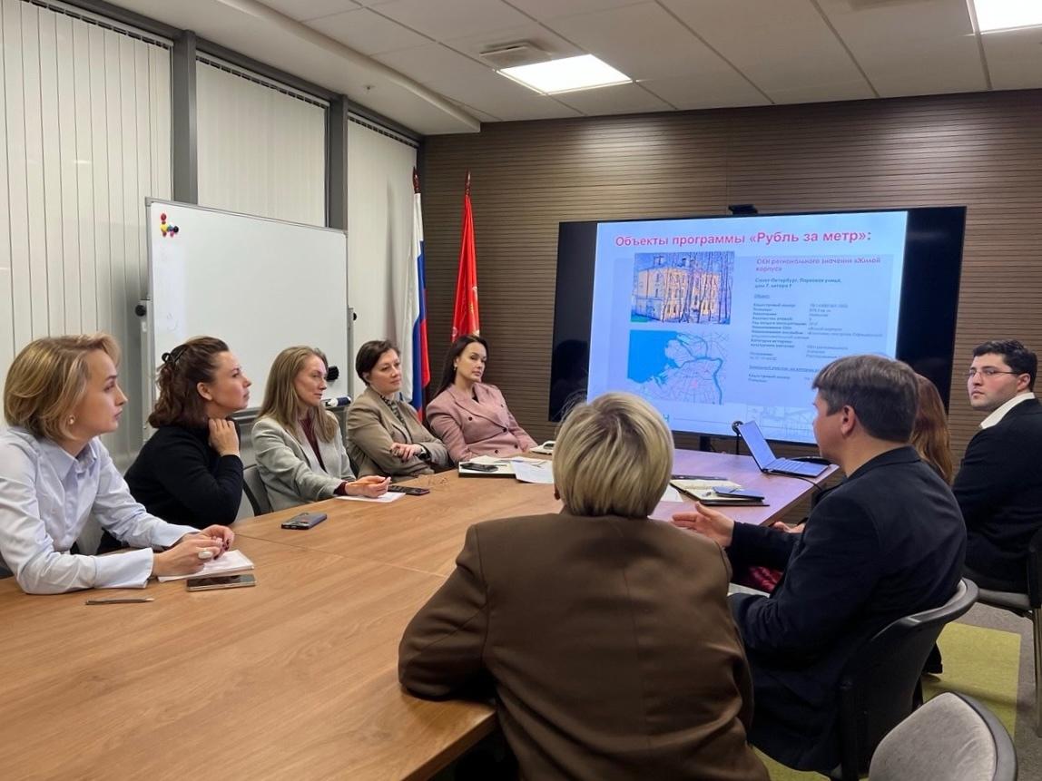На встрече присутствовали заместитель председателя КИО Ирина Васильевна Щукина, представители Комитета по государственному контролю, использованию и охране памятников истории и культуры (КГИОП), СПб ГБУ «Управление инвестиций», Союза реставраторов, ГК ACADEMIA, СПб ГБУ «ГУИОН» (ПИБ).