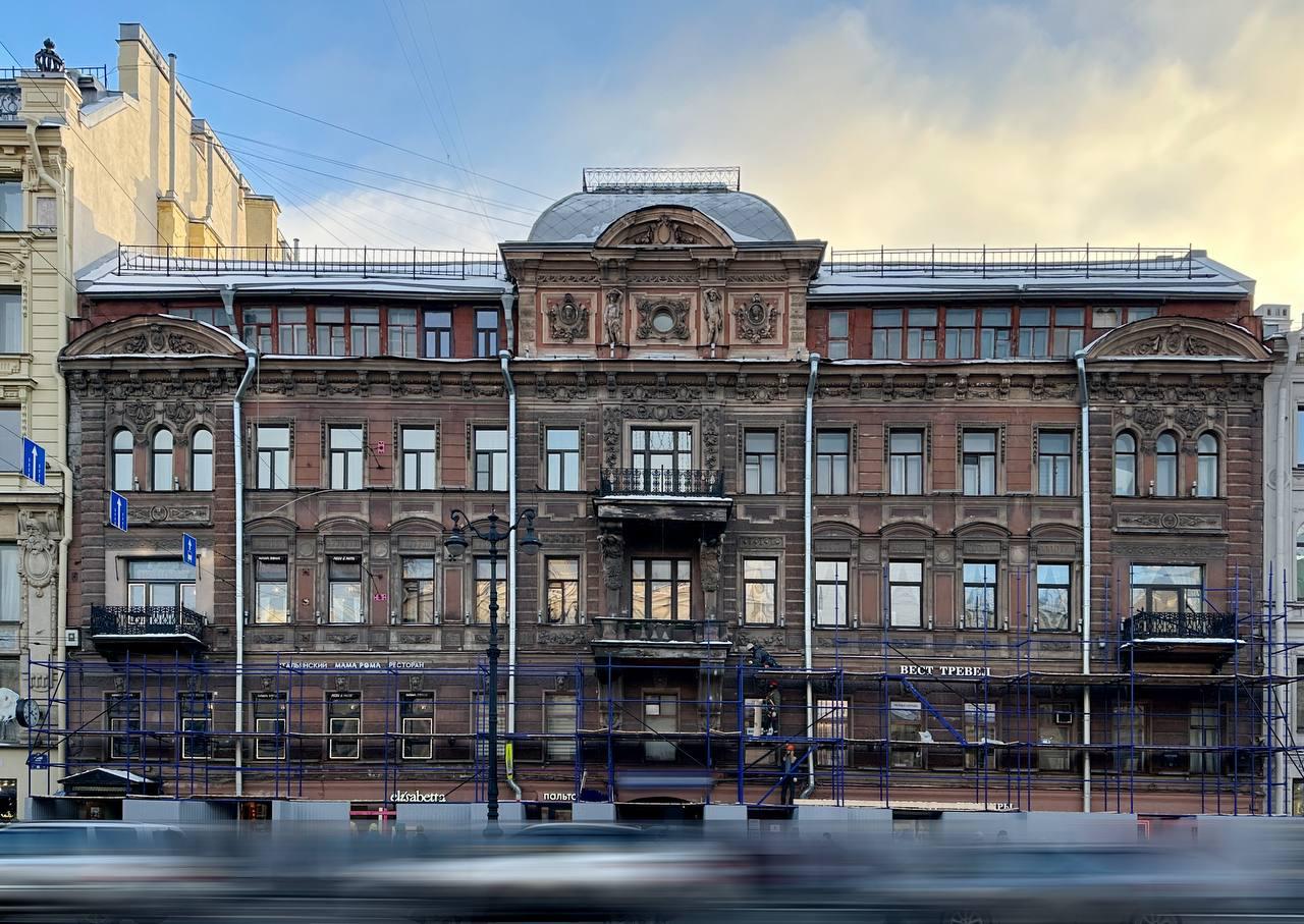 Здание Санкт-Петербургского Тульского поземельного банка на Невском проспекте одевают в леса