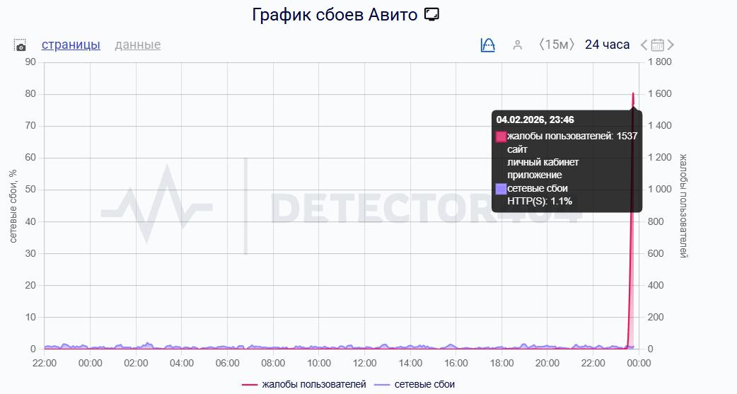 Почти тысяча жалоб поступила на «Авито» за последние 15 минут, передает телеграм-канал мониторингового сервиса «Сбой.рф».