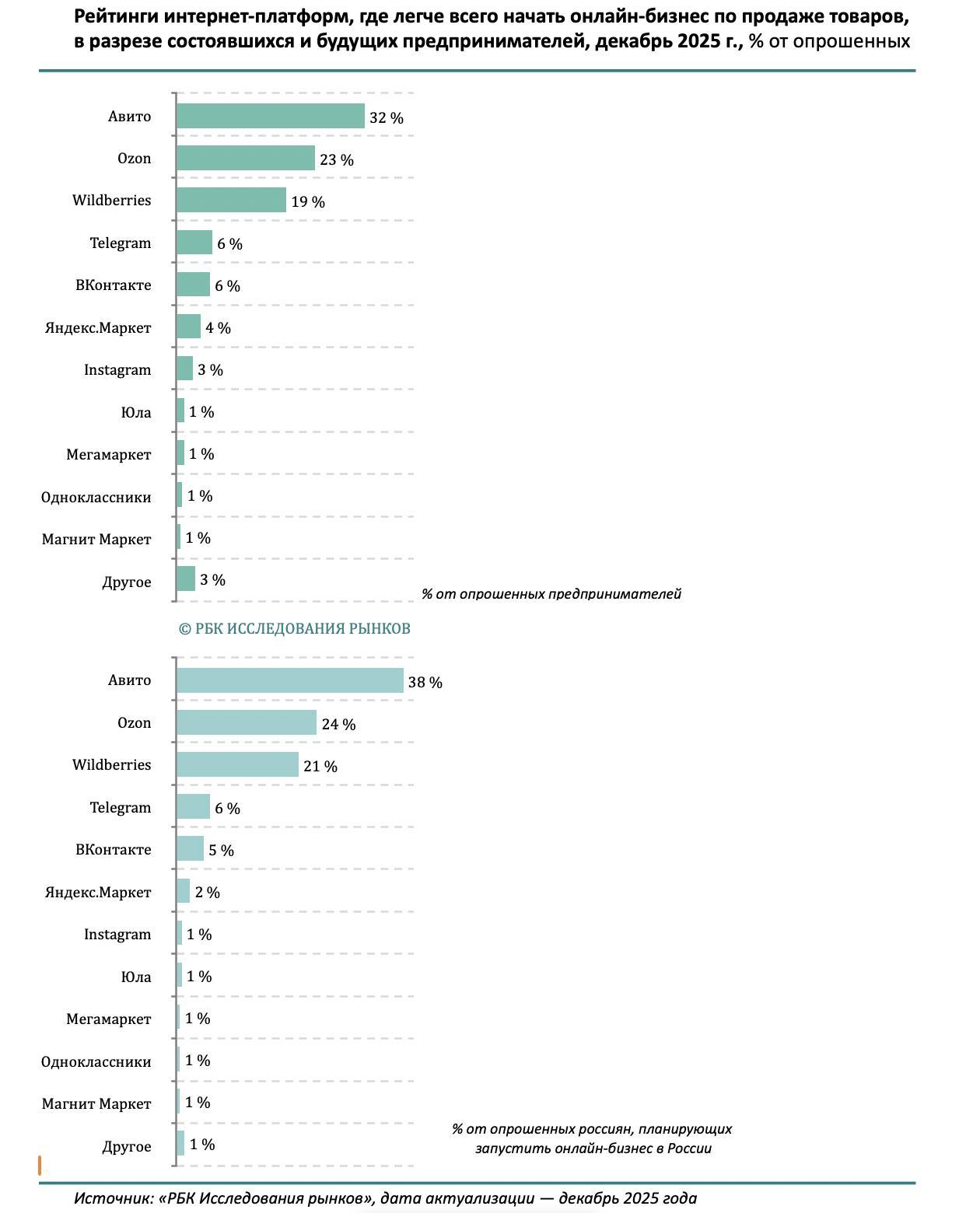 Рейтинг исходит из результатов опроса деловой аудитории РБК, который проходил в декабре 2025 года. В нем приняли участие действующие предприниматели и россияне, планирующие запустить свой онлайн-бизнес.