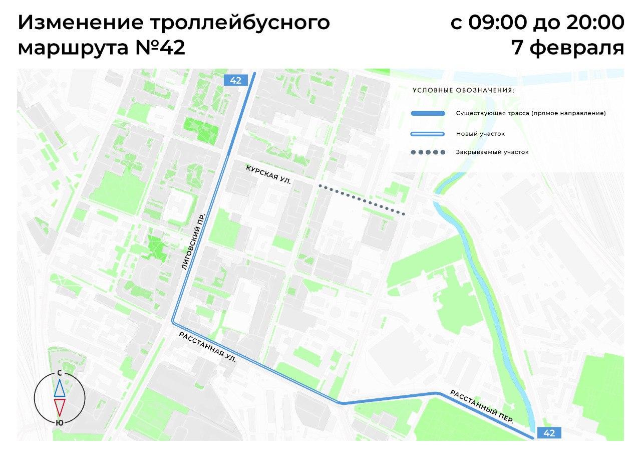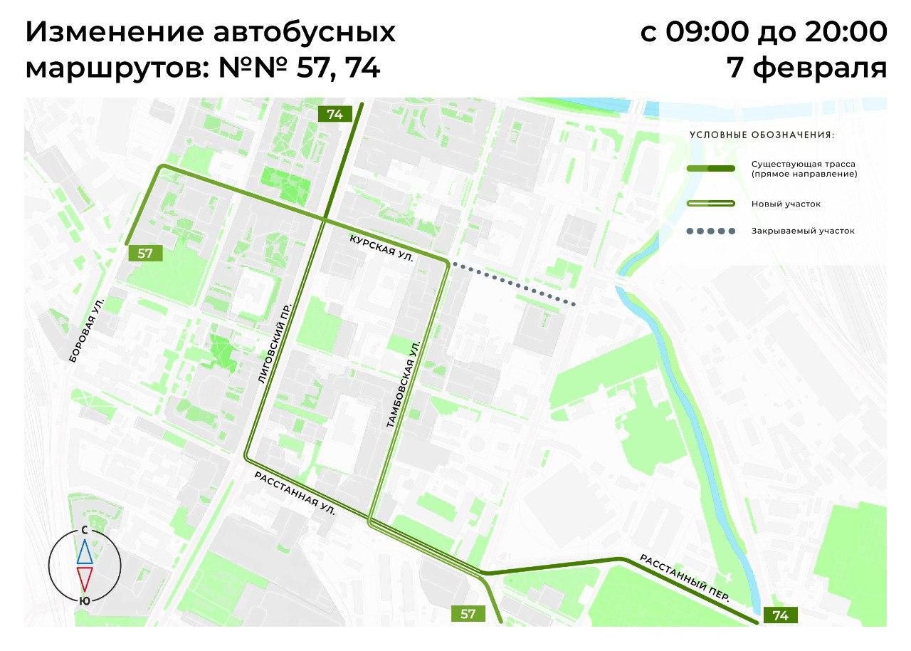 В Петербурге временно изменили маршруты автобусов № 57 и № 74 и троллейбуса № 42