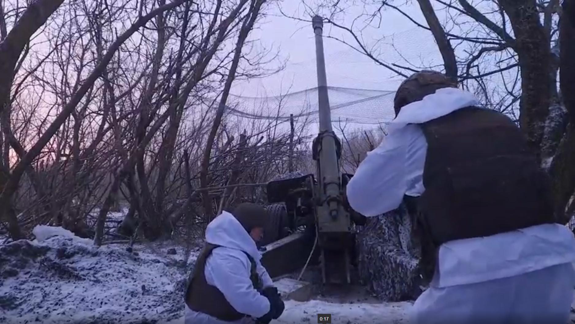 Огневую позицию запорошило. Маскировочная сеть в сугробах, воины скидывают ее, очищают гаубицу от снега. Вскоре над полями проносится эхо очередного выстрела.