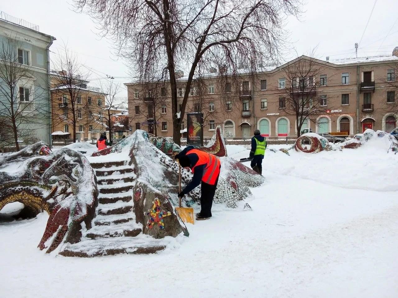 Как отмечается, садовники ухаживают за конструкцией – сметают с поверхности снег, прочищают дорожки и скамейки.