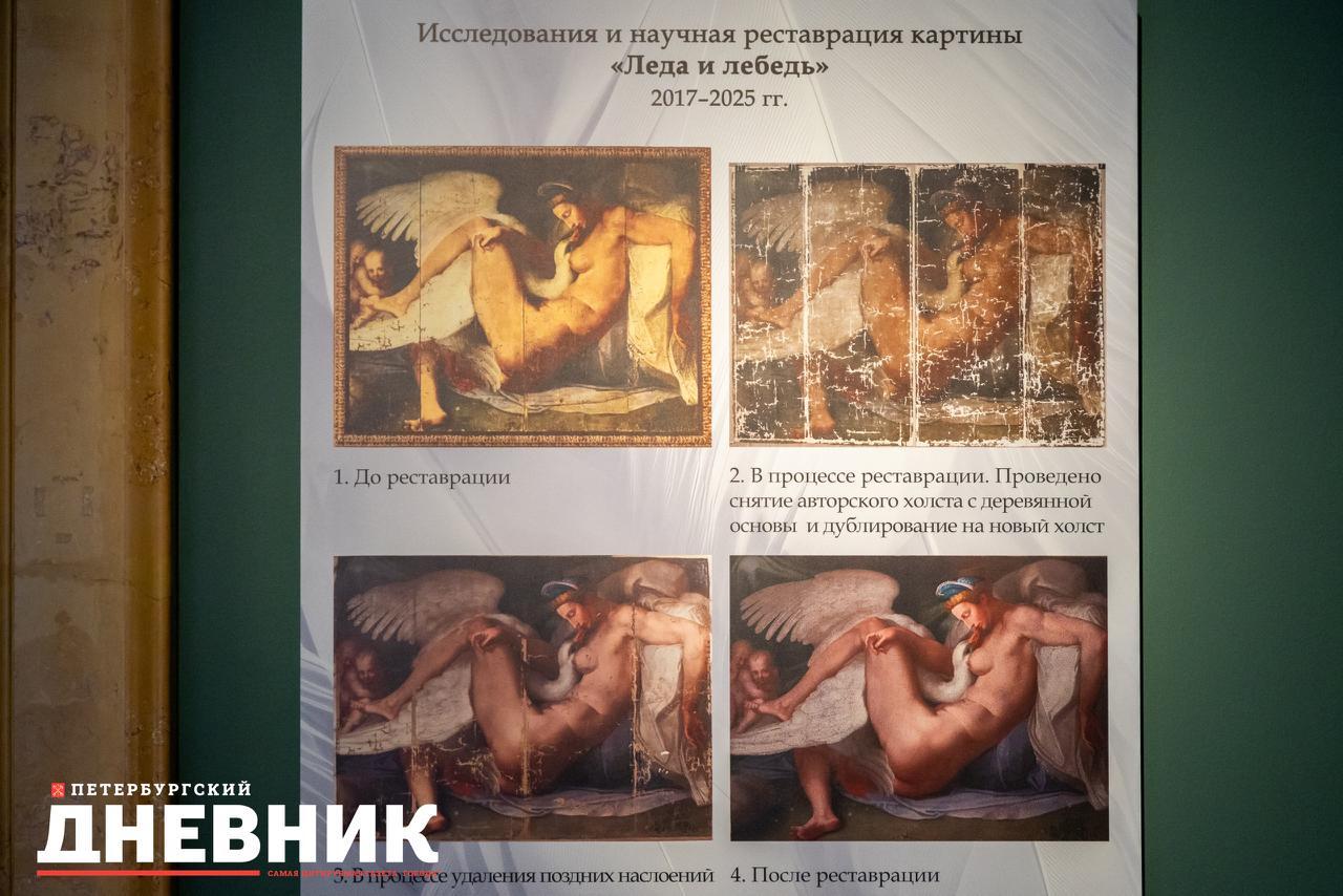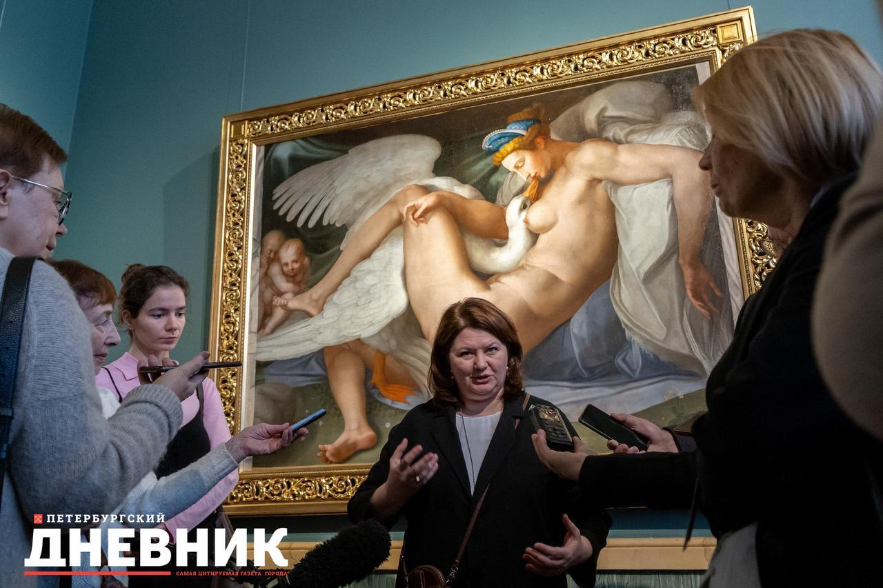 Корреспондент «Петербургского дневника» запечатлел, как прошел пресс-показ выставки в Эрмитаже «Леда и лебедь. Микеланджело (круг). Из частной коллекции».