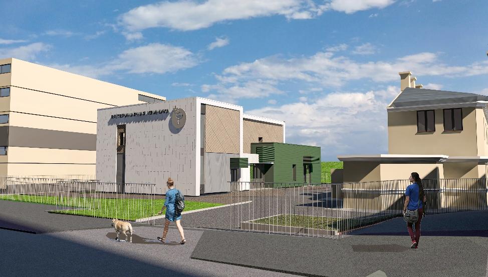 Лечебница разместится рядом с уже действующей ветклиникой. В здании предусмотрены холл, процедурные кабинеты и аптечный пункт. Хозяйственно-бытовые, служебные и технические помещения, а также кабинет вакцинации расположатся в одноэтажной части строения и будут иметь отдельные входы.
