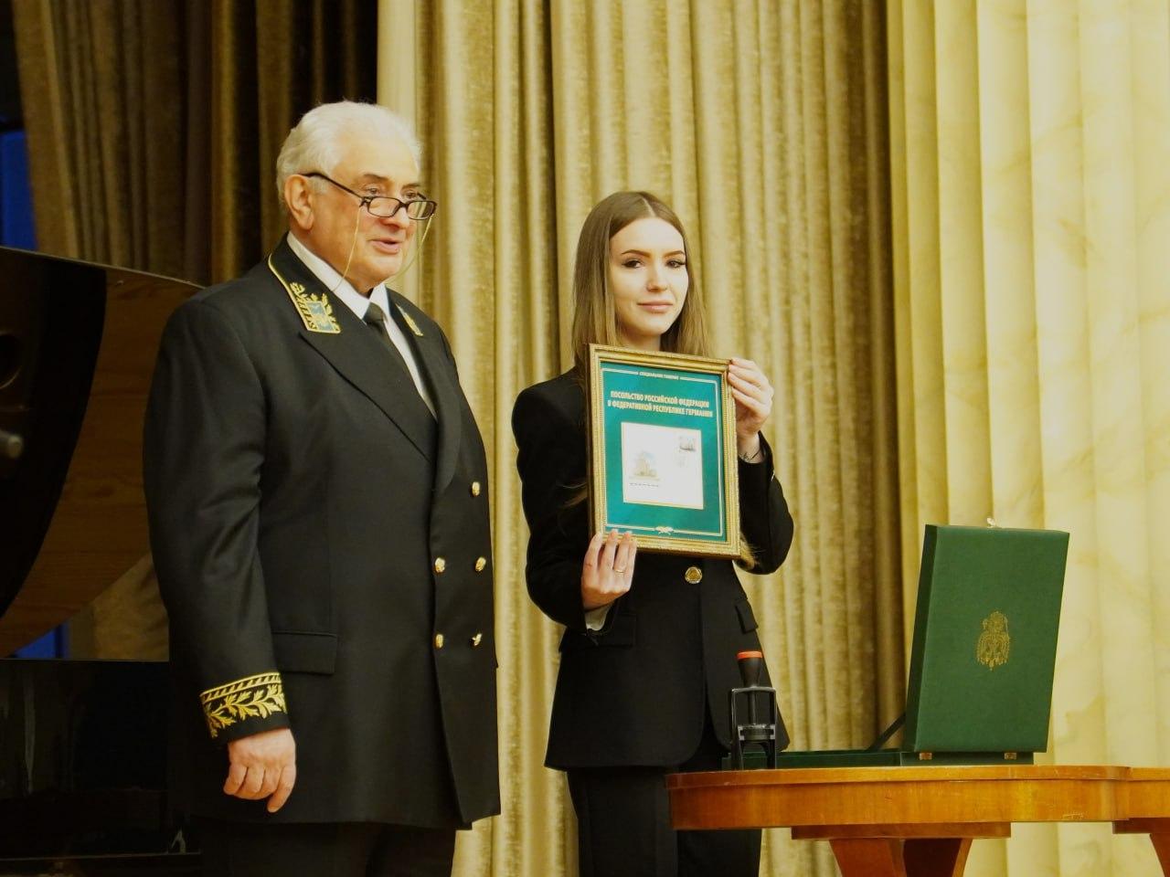 К гостям с приветственной речью обратился посол России в Германии Сергей Нечаев. Он огласил поступившие поздравления президента РФ Владимира Путина, председателя правительства Михаила Мишустина и министра иностранных дел Сергея Лаврова.