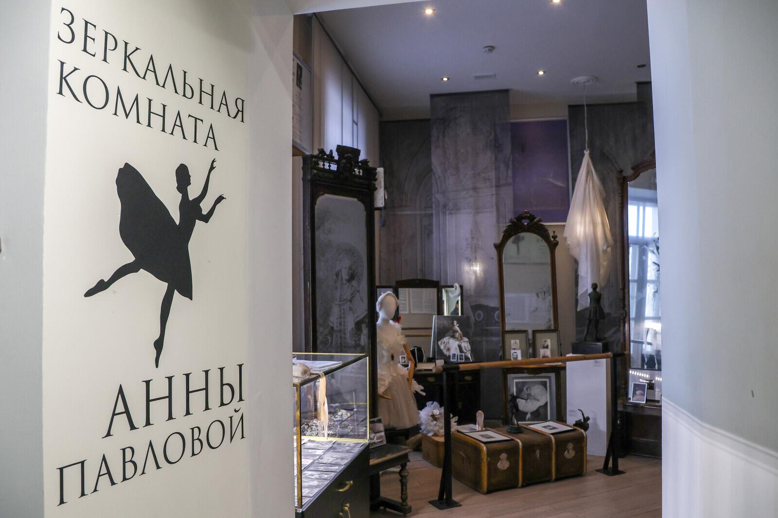 В 1910 году Павлова создала собственную труппу и отправилась в кругосветное балетное турне. Дотошные биографы балерины подсчитали, что за 22 года бесконечных гастролей она проделала 500 тысяч миль по суше и по морю, побывала более чем в 50 странах и дала примерно 9 тысяч спектаклей. За вечные разъезды Павлову прозвали Терпсихорой пакетботов. Об этом посетителям Зеркальной комнаты напоминают расставленные здесь сундуки и чемоданы.