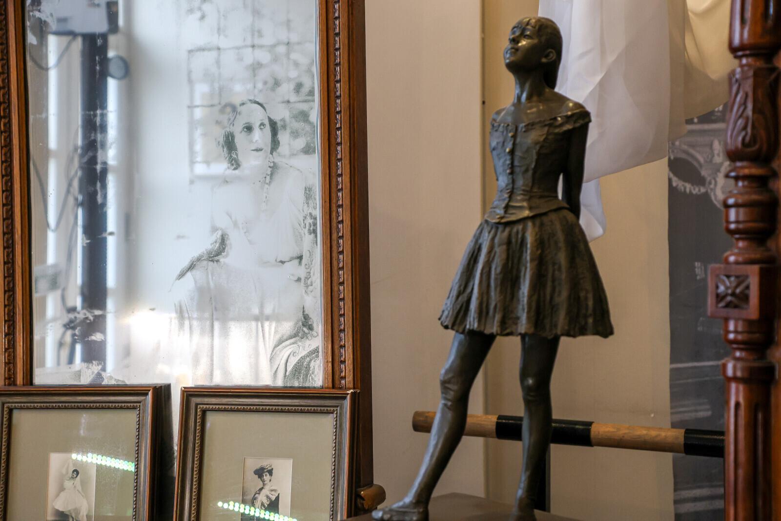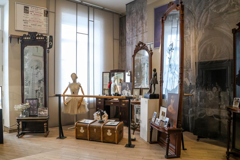 Сегодня в этих апартаментах ей было бы тесновато, ведь раньше она занимала здесь несколько комнат. Но и это небольшое пространство точно и бережно передает атмосферу того времени и жилища, чья хозяйка принадлежала миру искусства. Зеркала с изображением Павловой, сундук с пуантами, хрустальная люстра и повсюду – фотографии балерины.
