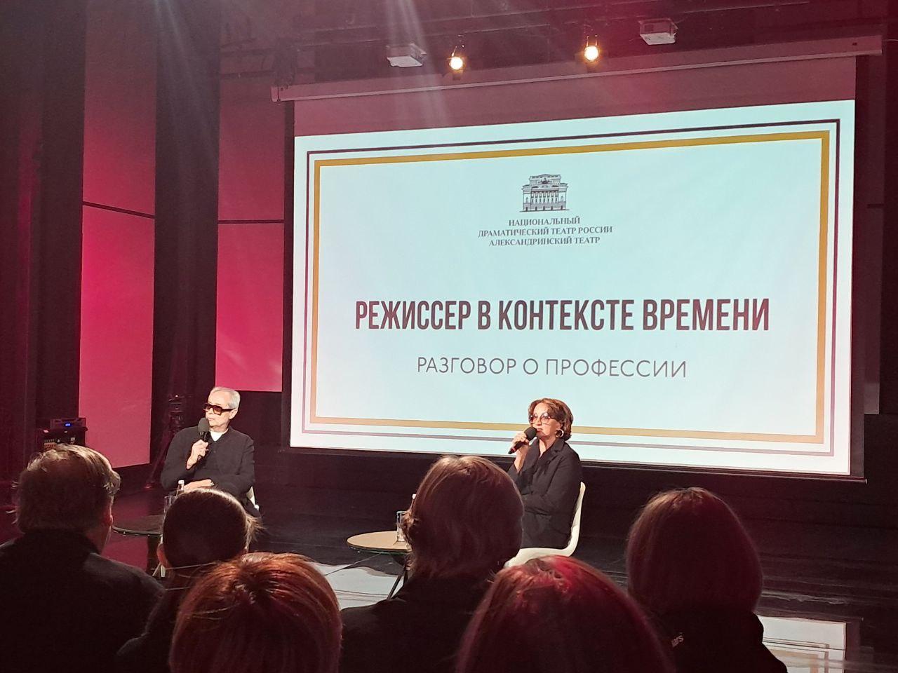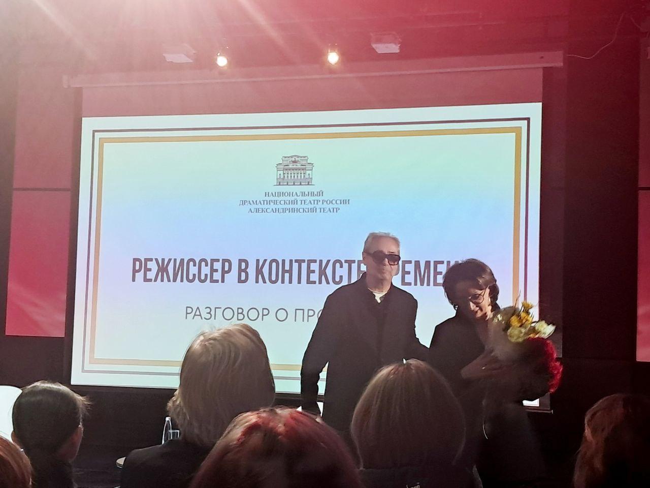Мероприятие провела театральный критик Марина Токарева. Она подчеркнула, что разговор с президентом Александринского театра будет не диалогом, а полилогом. К мероприятию дистанционно подключились ведущие режиссеры страны – те, кто создает сценический язык и задает главные вопросы себе и времени. Алексей Бородин, Лев Додин, Кама Гинкас и Роберт Стуруа записали монологи, приуроченные к юбилею коллеги и друга.