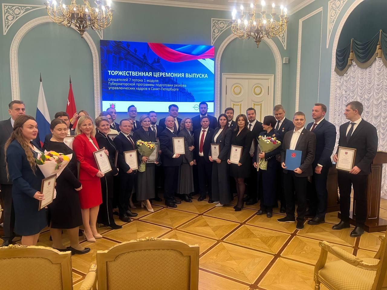 Губернатор Санкт-Петербурга Александр Беглов вручил дипломы 23 выпускникам седьмого потока Губернаторской программы подготовки резерва управленческих кадров. Все они успешно завершили обучение по первому модулю «Роль лидера в условиях изменений».