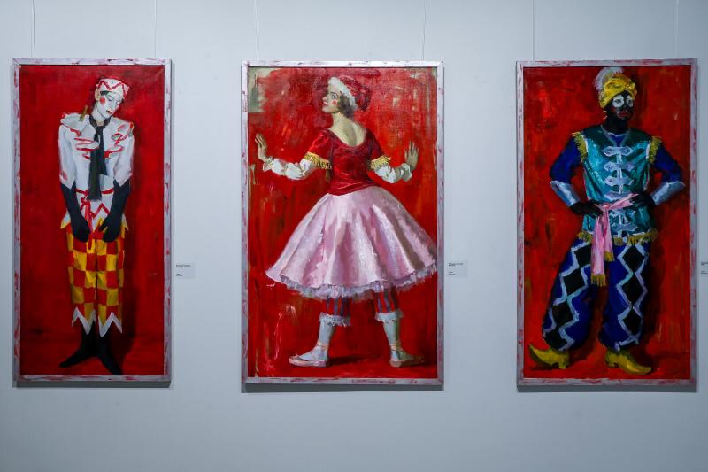 На выставке можно увидеть и три картины, написанные студенткой Академии художеств Анастасией Макаровой. В старейшем учебном заведении России до сих пор большое внимание уделяют историческим сюжетам, и молодая художница представляет на суд зрителей сюжеты комедии дель арте.