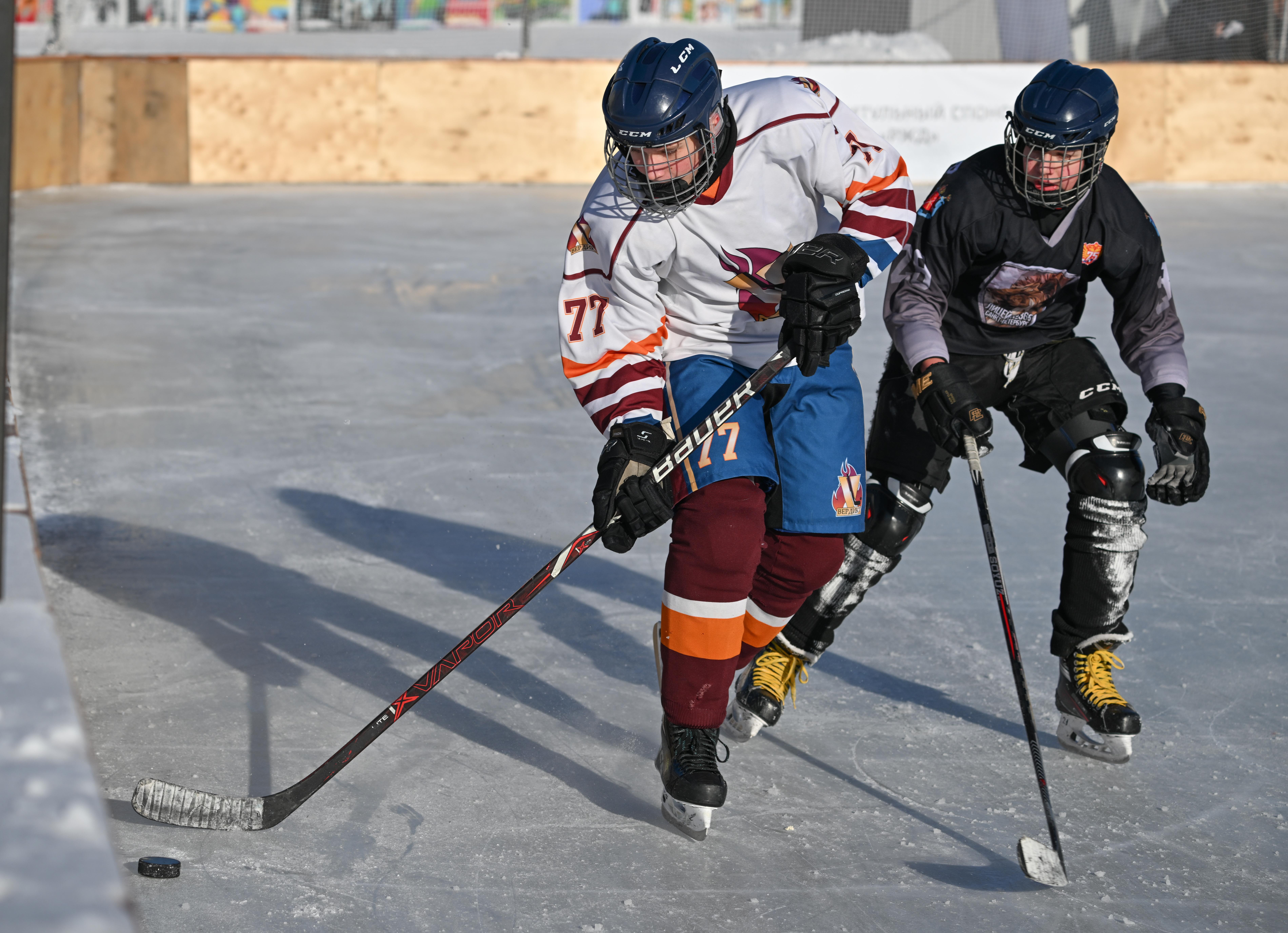 Морозный солнечный день, каток Музея железных дорог России рядом с Балтийским вокзалом, на льду юные хоккеисты в яркой форме. Здесь уже в четвертый раз проходит турнир «Легенды льда». Он занимает два дня, в этом году 14 февраля играли детские команды (возраст игроков – 12-14 лет), 15 февраля будут соревноваться коллективы взрослых спортсменов (18 лет и старше).