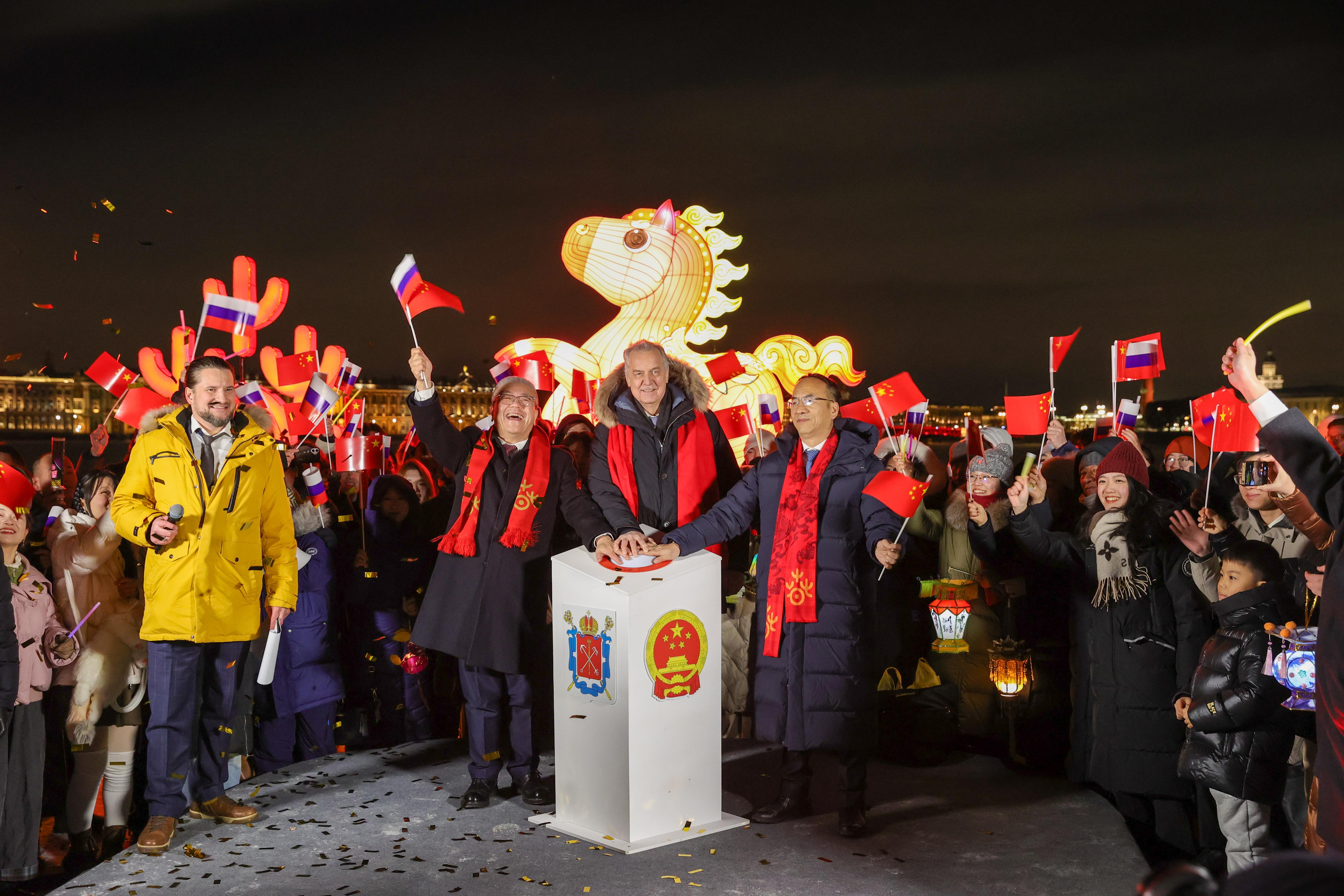 «Наша делегация очень счастлива посетить Санкт-Петербург в канун китайского Нового года. Мы привезли на берега Невы часть нашей культуры – фонари от мастеров из города Цзыгун, потому что хотим, чтобы Санкт-Петербург стал еще более красивым. Жители провинции Сычуань передают наилучшие пожелания петербуржцам. Пусть свет от наших фонарей озарит мосты, которые соединяют наши братские сердца, пусть Петербург станет теплее и ближе», – сказал заместитель руководителя Канцелярии иностранных дел провинции Сычуань Пан Гуанлуна на торжественной церемонии зажигания праздничной иллюминации.