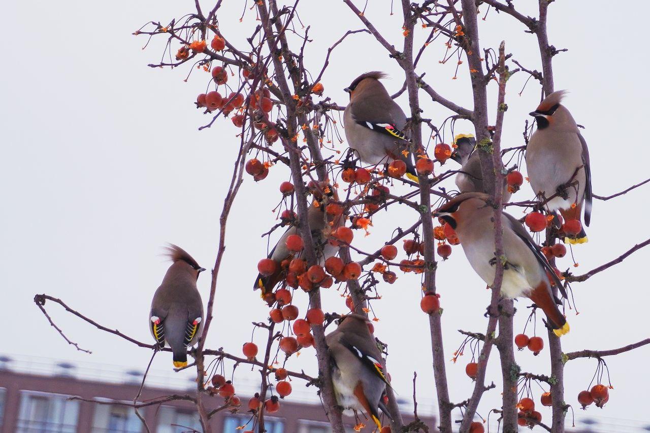 В сквере у пересечения проспекта Ветеранов и улицы Маршала Мерецкова садовники стали свидетелями красочного зрелища: стая свиристелей облепила несколько декоративных яблонь. Об этом поделились в пресс-службе Комитета по благоустройству Петербурга.