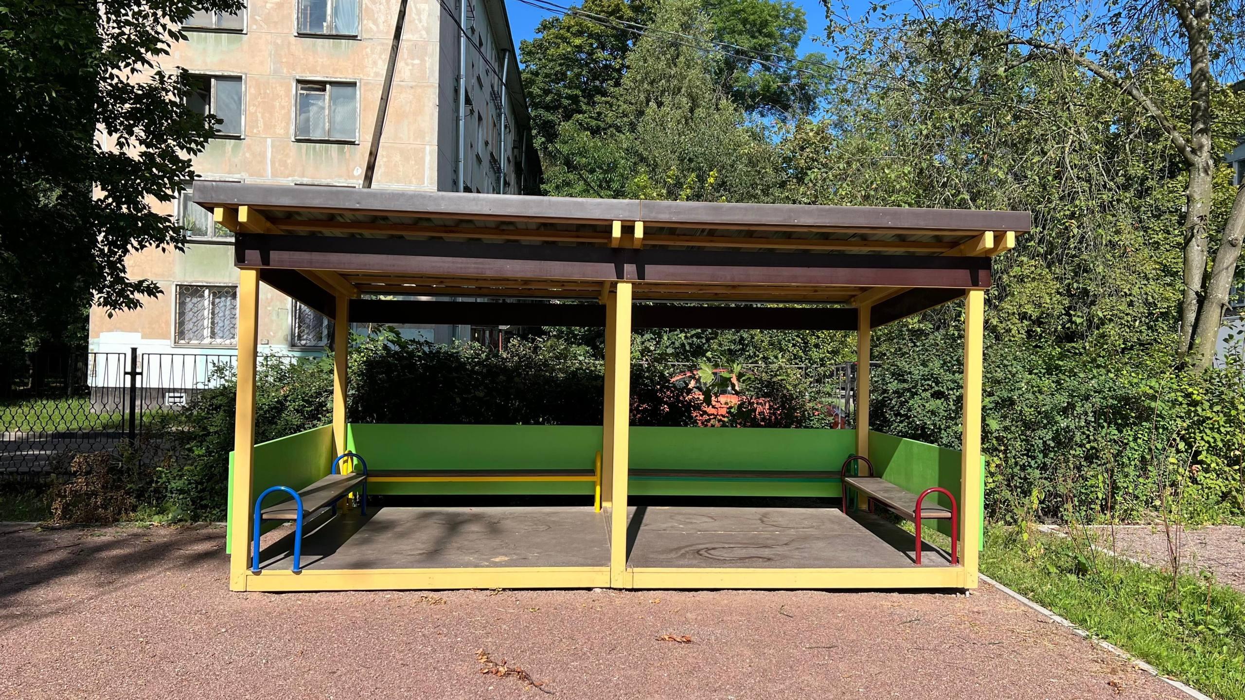 В Петербурге игровые площадки детского сада на проспекте Большевиков оснастят теневыми навесами