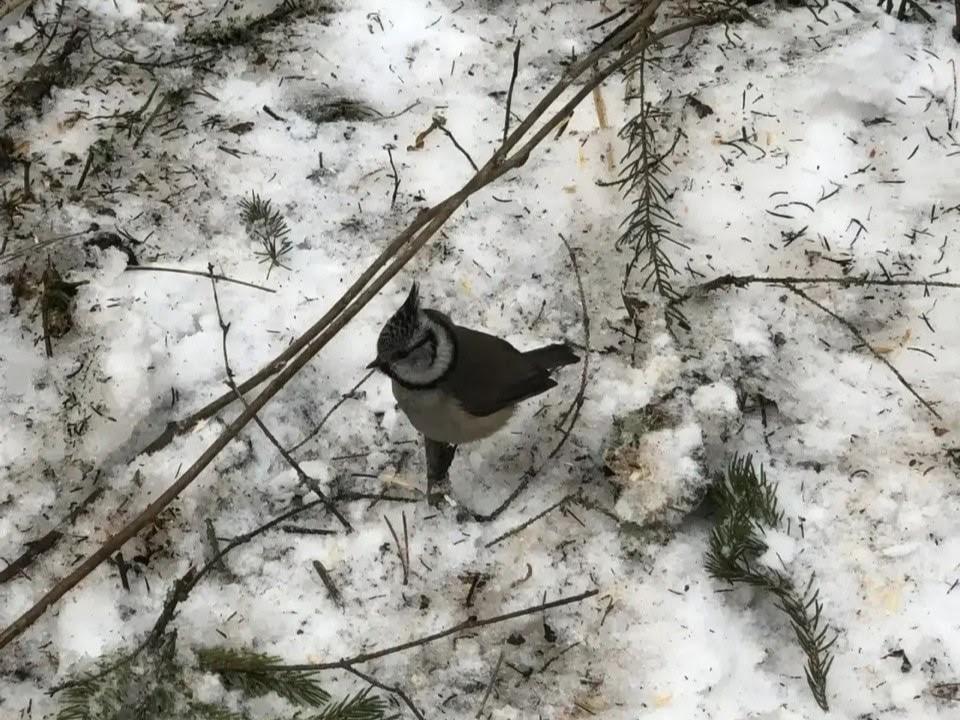 Хохлатая синица решила проинспектировать уборку в Приморском лесничестве