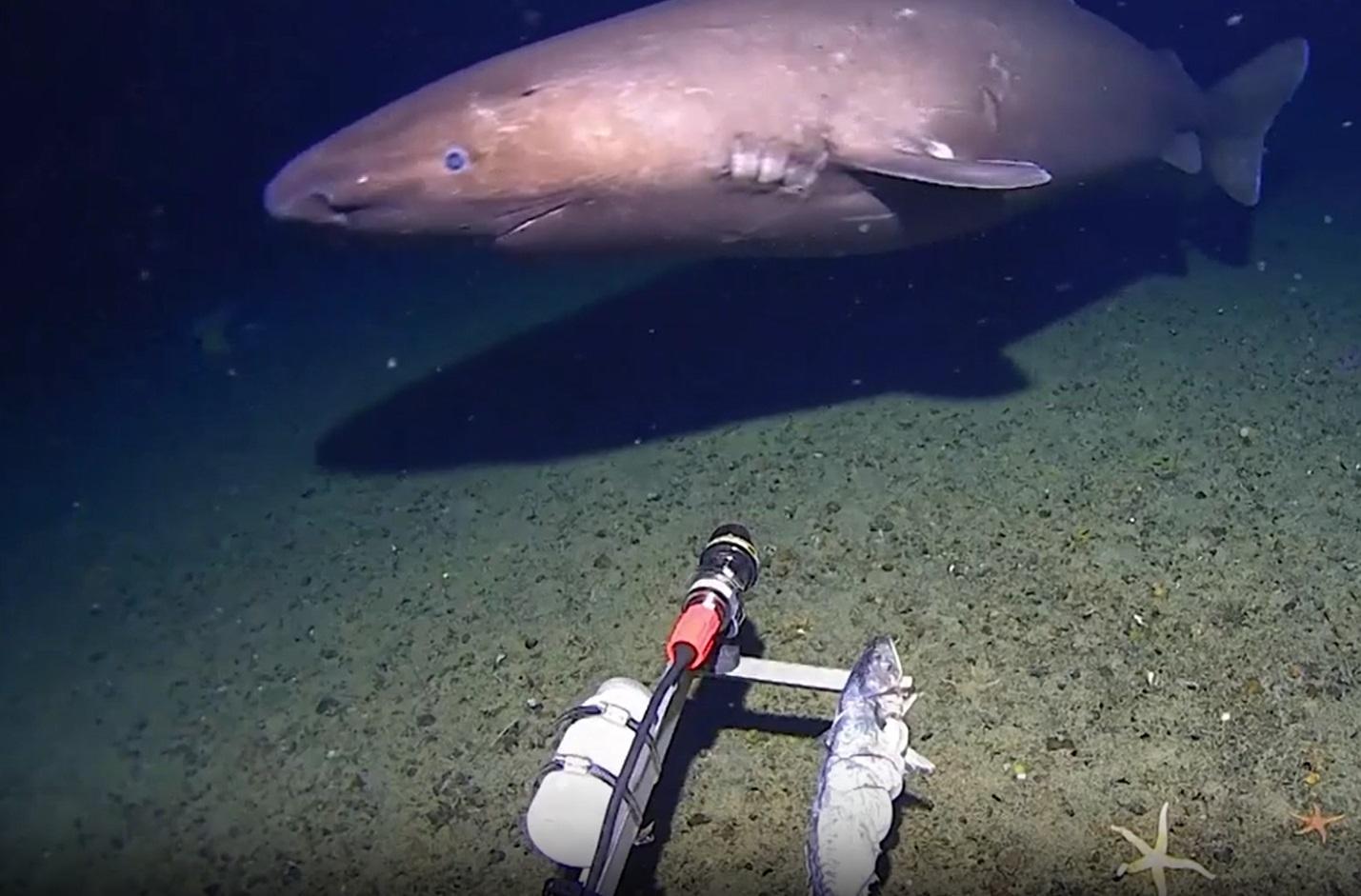 Хищница проплывала на глубине 490 метров, где температура воды составляет около 0 градусов Цельсия.