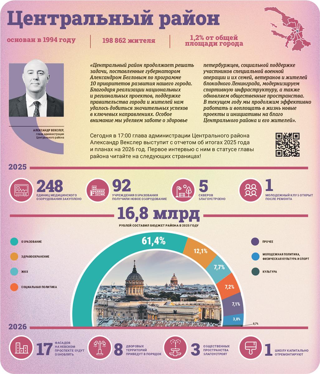 Сегодня в 17:00 глава администрации Центрального района Александр Векслер выступит с отчетом об итогах 2025 года и планах на 2026 год.