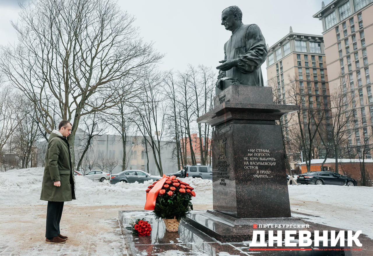 Пиотровский возложил цветы к памятнику Собчаку на Васильевском острове